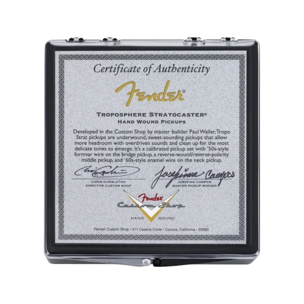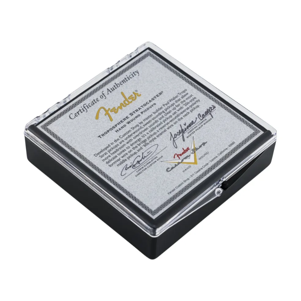 Developed in the Fender Custom Shop by master builder Paul Waller, the Troposphere Stratocaster pickups deliver sweet, dynamic tones with exceptional clarity. These underwound pickups provide increased headroom for crisp overdriven tones while maintaining the ability to clean up beautifully for delicate, expressive playing.