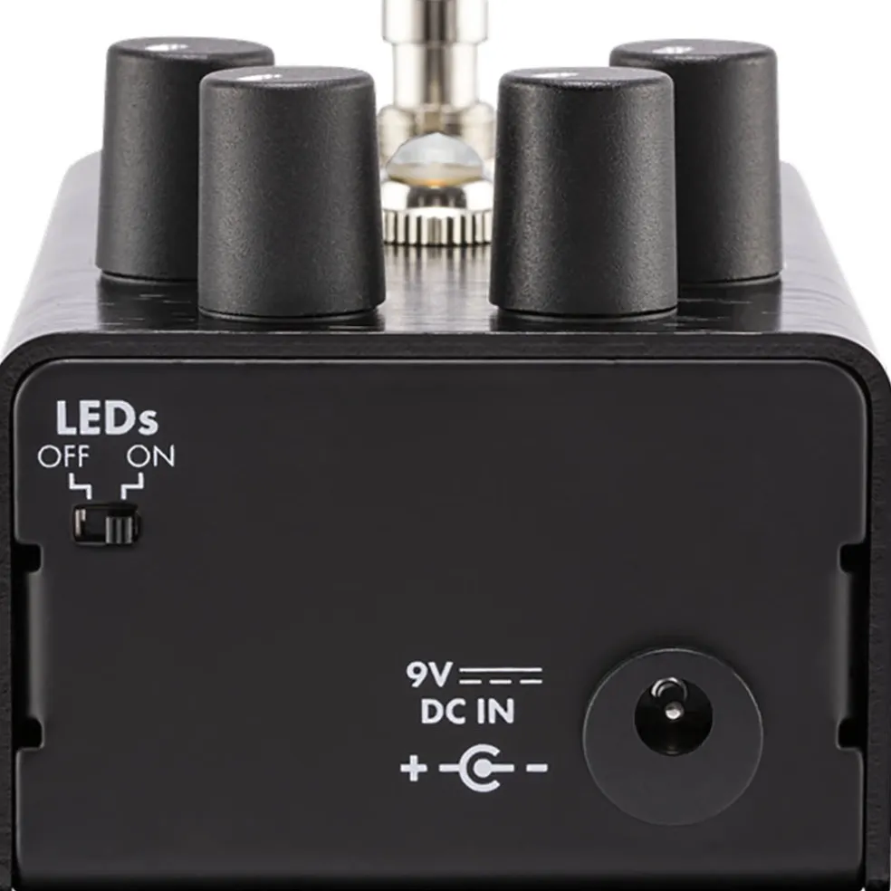 Dynamics are a crucial part of playing music. When controlled they bring music to life, but uneven or wild playing can ruin a performance. We put our expertise to work creating The Bends Compressor, a studio-quality stompbox that tames wild volume spikes without altering your tone. Drive and Recovery controls let you dial in the perfect amount of compression to complement your playing style and extend sustain, while the Blend control lets you mix in the dry signal to maintain your natural pick attack. The Amp Jewel LED changes color from white to pink along with your playing to help show when the compression circuit is engaged and how long your signal is affected.