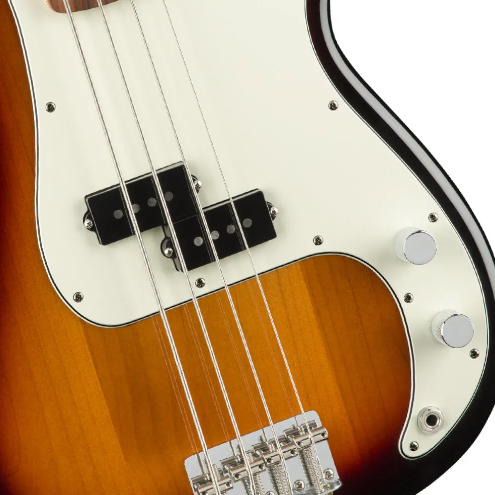Respecting our heritage while maintaining our innovative spirit, the fat, punchy Player Series split-coil Precision Bass middle pickup is packed with legendary Fender bass tone, turned up to 11 for modern ears. Master volume and tone controls are close to hand to shape the pickup’s powerful voice so you can easily craft your sound. The “Modern C”-shaped maple neck hosts a 9.5″-radius fingerboard with 20 medium-jumbo frets that are ideal for almost any playing style, while the 4-saddle bridge is engineered for accurate intonation and easy action adjustment so you can personalize the feel to your playing style and taste.