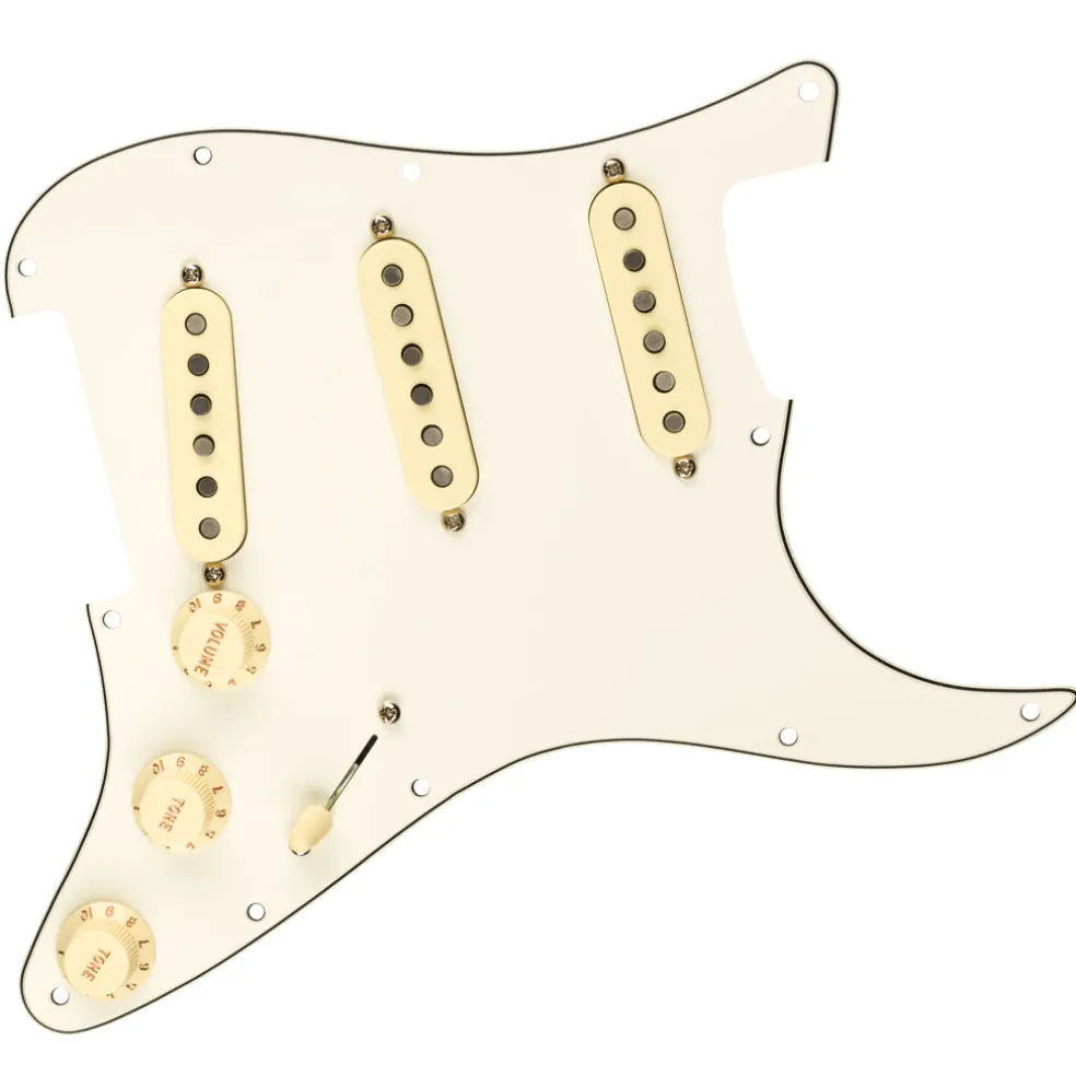 Fender – Pre-Wired Strat Pickguard, Custom Shop Fat 50's SSS, Parchment 11 Hole PG