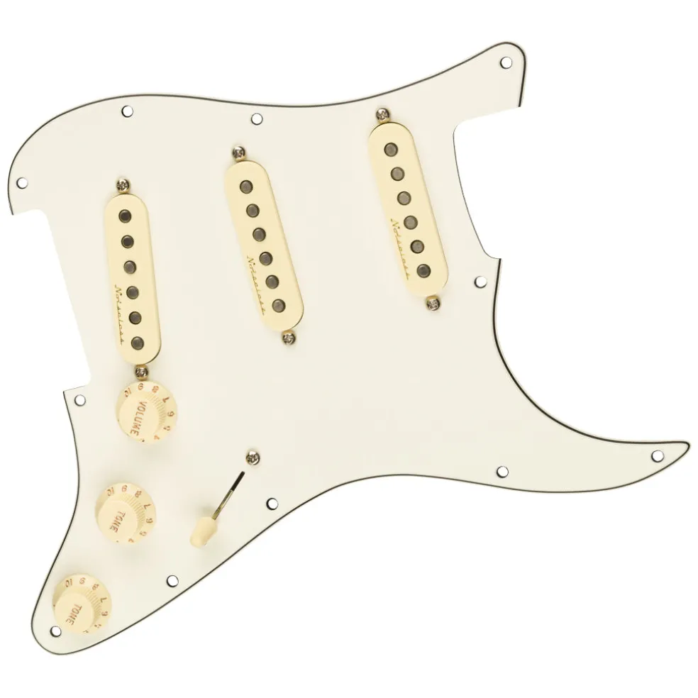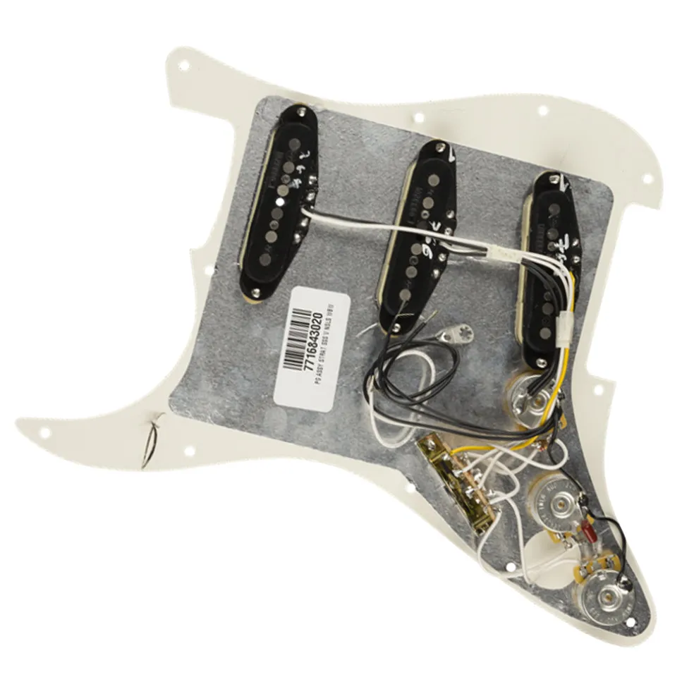 Customize your tone with the Pre-Wired Stratocaster pickguards. Made with premium components in the same factory as our iconic guitars, this drop-in pickguard is easy to install. Simply remove your old guard, solder the output jack and ground wires, screw in the new guard and you’re ready to rock with pure Fender sound.