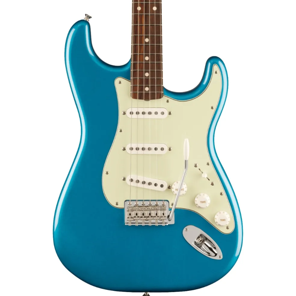 The Vintera® II ’60s Stratocaster® features an alder body and a maple neck with rosewood fingerboard for classic Fender tone that’s full of punch and clarity. The slim C shape neck is based on a classic ’60s profile for an intuitive and inviting feel, while the 7.25 radius fingerboard with vintage-tall frets provides vintage comfort with ample room for big bends and expressive vibrato. Under the hood, you’ll find a trio of vintage-style ’60s pickups that deliver all the sweet and sparkling, warm and woody tone that made Fender famous. The vintage-style synchronized tremolo lets you dive and wail with abandon, while vintage-style tuning machines provide classic looks with a finer gear ratio and enhanced tuning stability to complete the package.