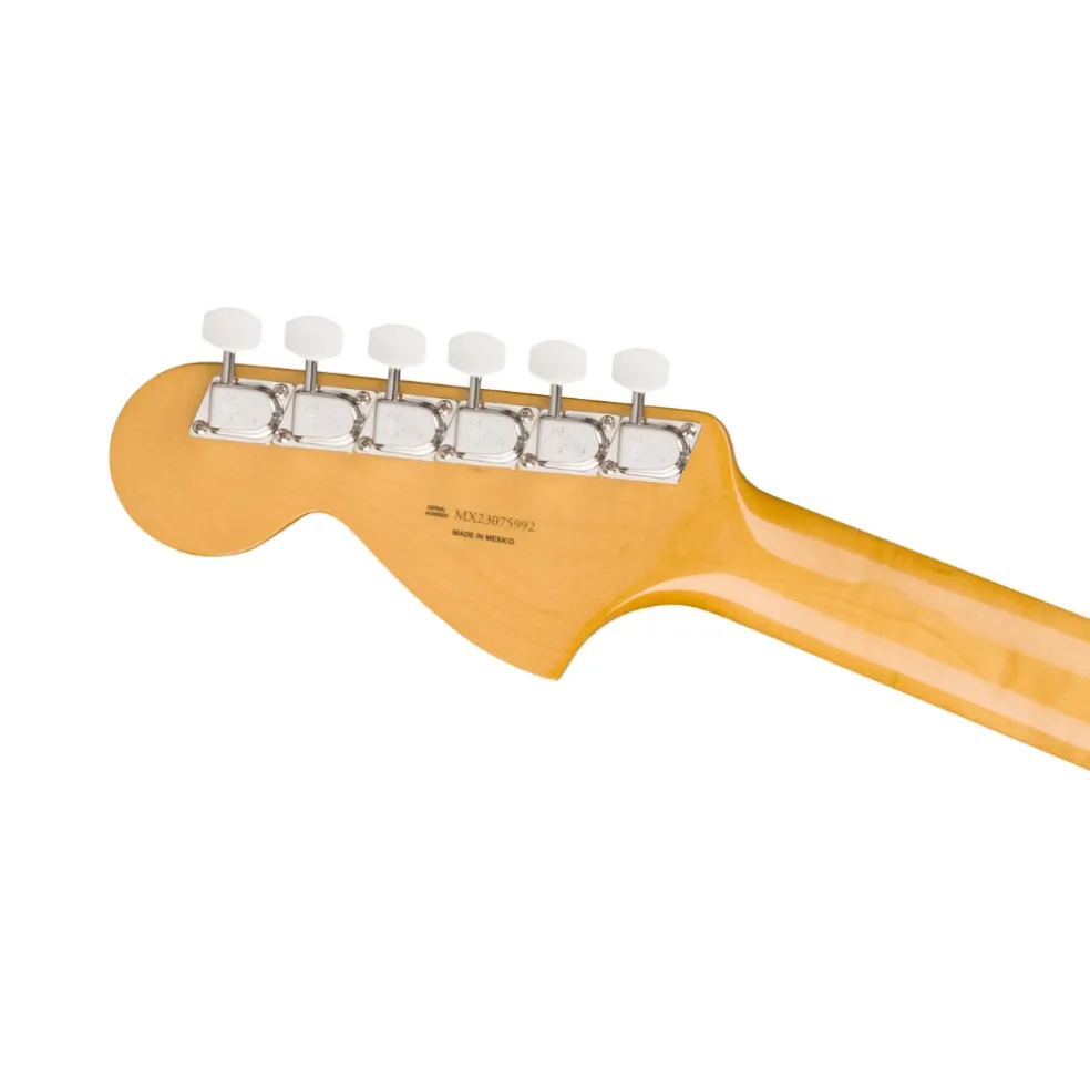 The Vintera® II ’70s Competition Mustang® features an alder body and a maple neck with rosewood fingerboard for classic Fender tone that’s full of punch and clarity. The early-’70s C-shape neck is based on a classic ’70s profile for an intuitive and inviting feel, while the 7.25 radius fingerboard with vintage-tall frets provide vintage comfort with ample room for big bends and expressive vibrato. Under the hood, the vintage-style ’70s single-coil pickups deliver all the sweet and sparkling, warm and woody tone that made Fender famous. The vintage-style Mustang® floating tremolo lets you dive and wail with abandon, while F-stamped tuning machines provide classic looks and enhanced tuning stability to complete the package.