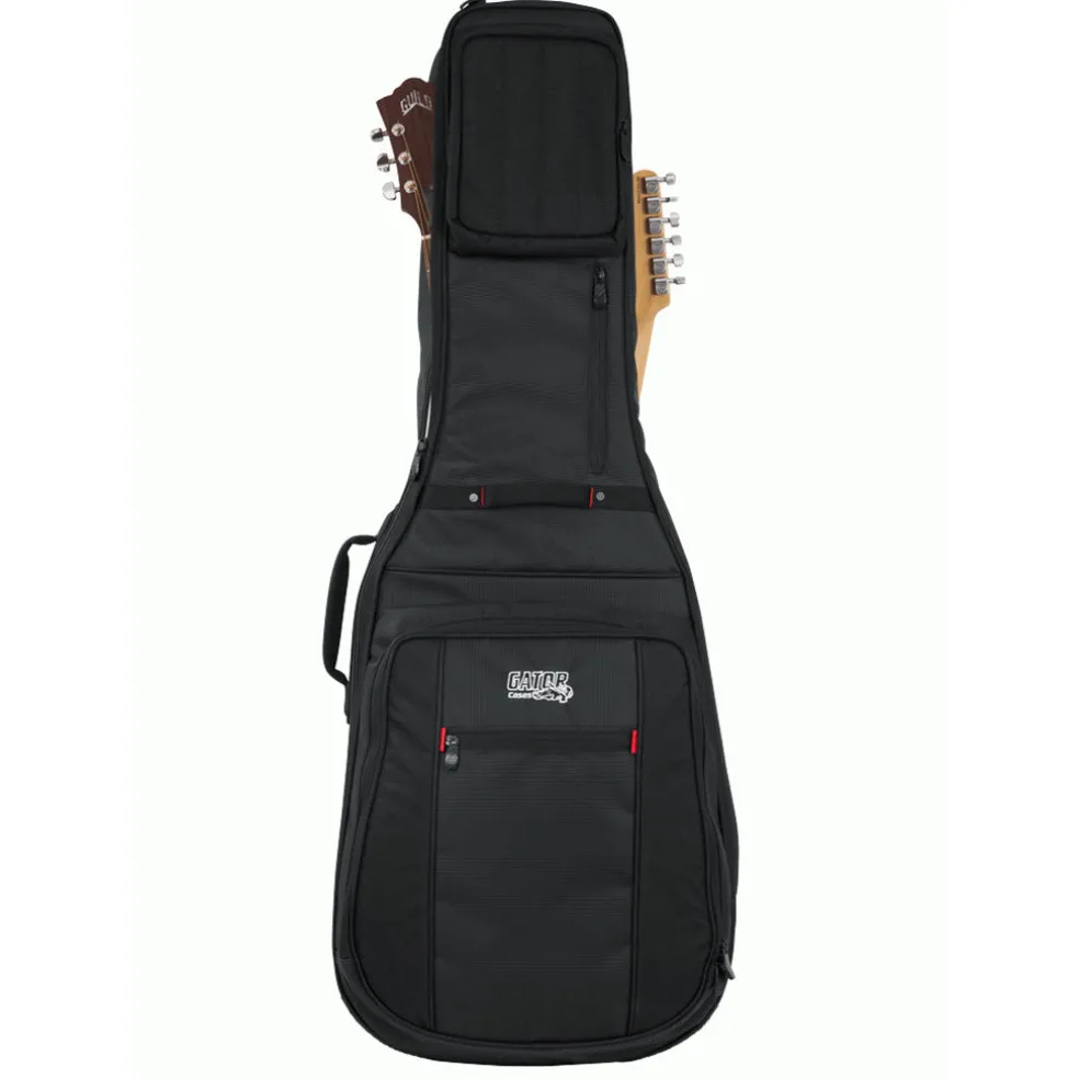 - Dual compartment padded gig bag designed to fit one (1) acoustic and one (1) electric guitar