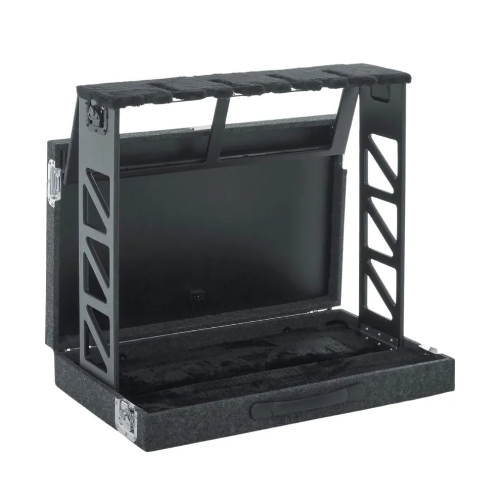 - Compact rack style four (4) guitar stand that folds into case