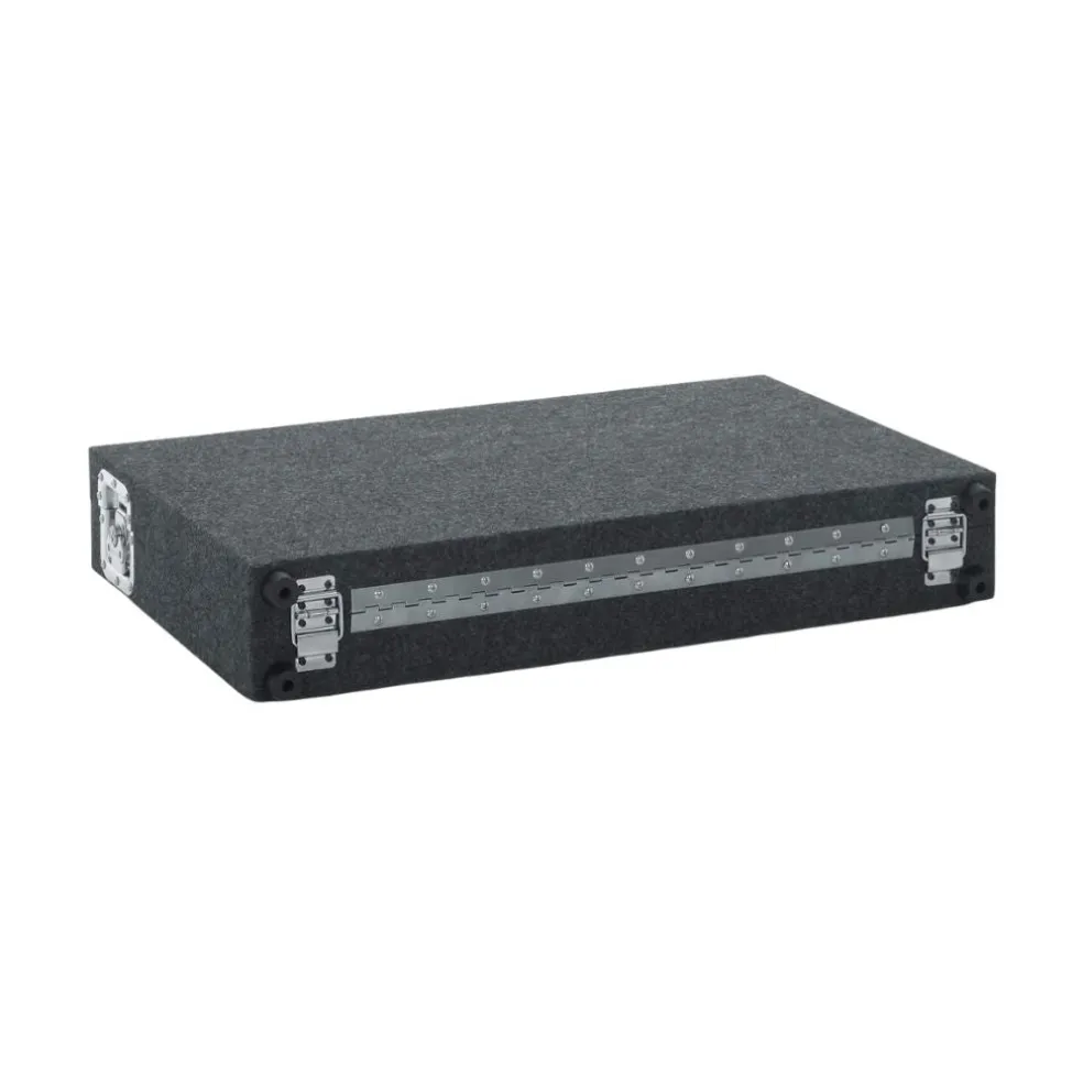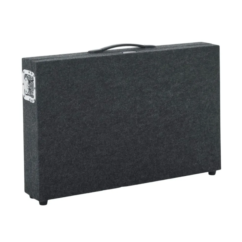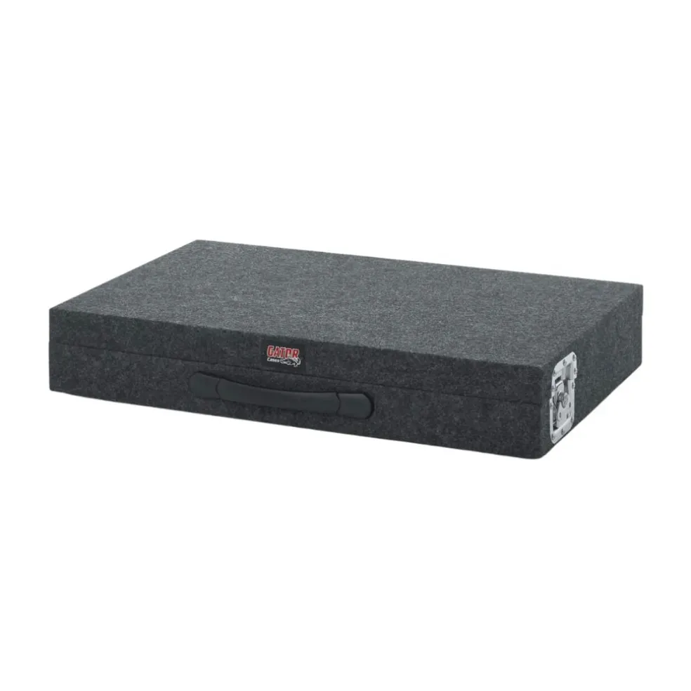 The exterior of the stand is constructed of sturdy Baltic birch wood covered in grey carpeting with feet on the back and bottom of the case to prevent wear and extend the life of the product. The Gator rack style stand case combo is flight and travel ready with commercial grade, Penn-Elcom twist latches, hardware and a rugged, comfortable carry handle.