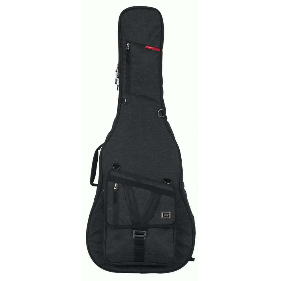 Gator’s Transit Series acoustic guitar gig bag is a great solution for transporting your favorite instrument to and from the gig. Transit gig bags are made from durable and weather-resistant materials that hold your instrument snugly. The interior protects your guitar’s finish with 20mm-thick padding and a removable 3-point interior padding system. And there is plenty of storage space for your accessories thanks to the large exterior pockets.