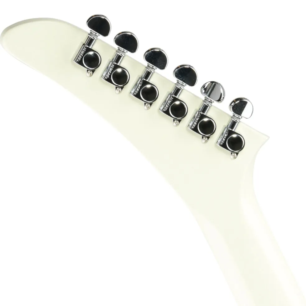 It has traveled to stages around the world, but the ‘70s icon is back to explore a new generation of players. Featuring a pair of ‘70s tribute humbuckers, hand wired with orange drop capacitors, this Explorer begs to be played loud. With its classic white finish, bound rosewood fingerboard, black speed knobs and chrome hardware, it looks as iconic as the generation of music it helped create.