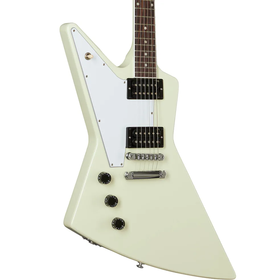 It has traveled to stages around the world, but the ‘70s icon is back to explore a new generation of players. Featuring a pair of ‘70s tribute humbuckers, hand wired with orange drop capacitors, this Explorer begs to be played loud. With its classic white finish, bound rosewood fingerboard, black speed knobs and chrome hardware, it looks as iconic as the generation of music it helped create.