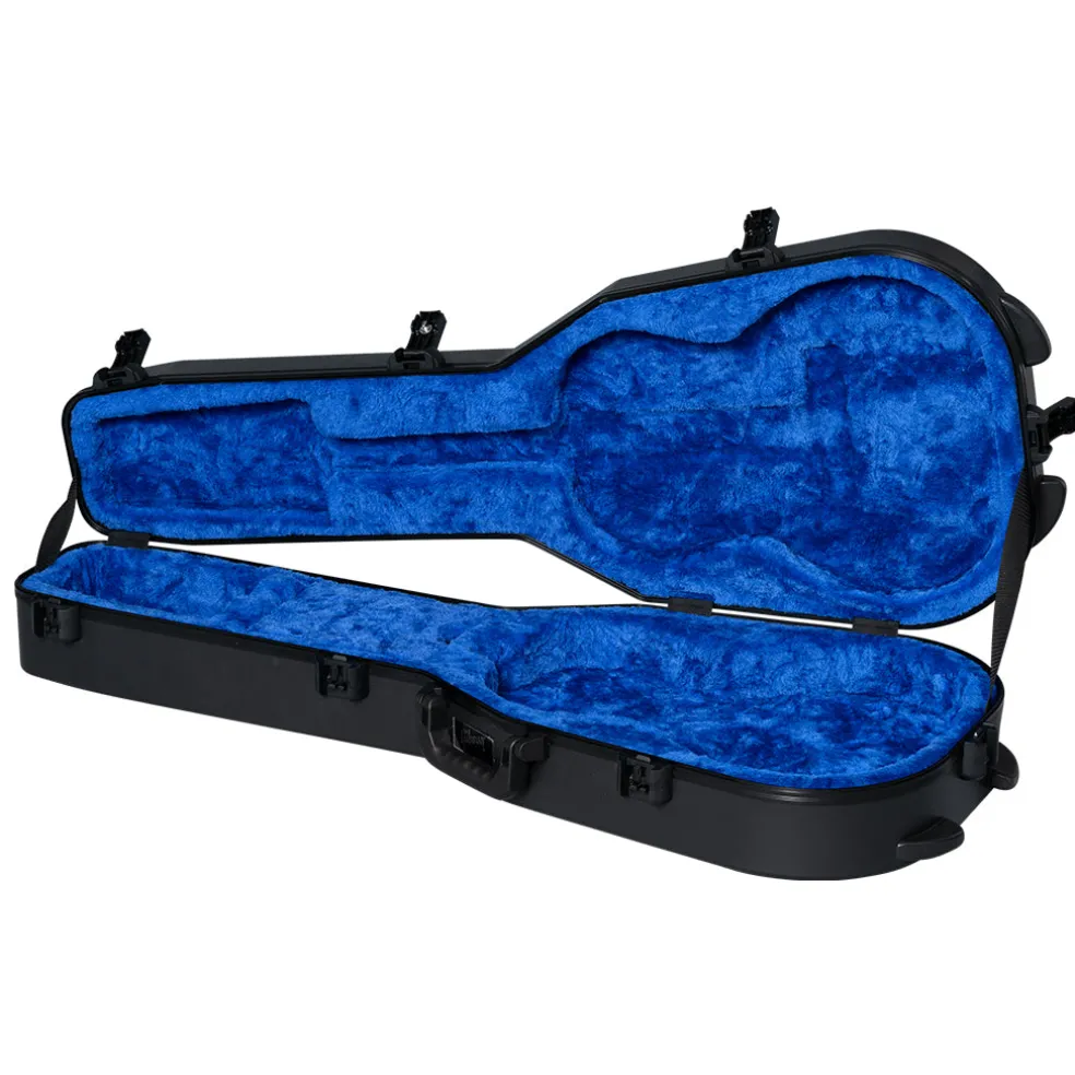 Inspired by the design of vintage 70s-era Gibson “chainsaw” cases, Gibson Deluxe Protector Series hardshell cases feature rugged polyethylene shells and modern improvements like TSA-approved locks, ergonomic soft-grip handles, and black powder-coated hardware. Protect your instrument with a case that delivers both vintage-inspired style and modern technology.