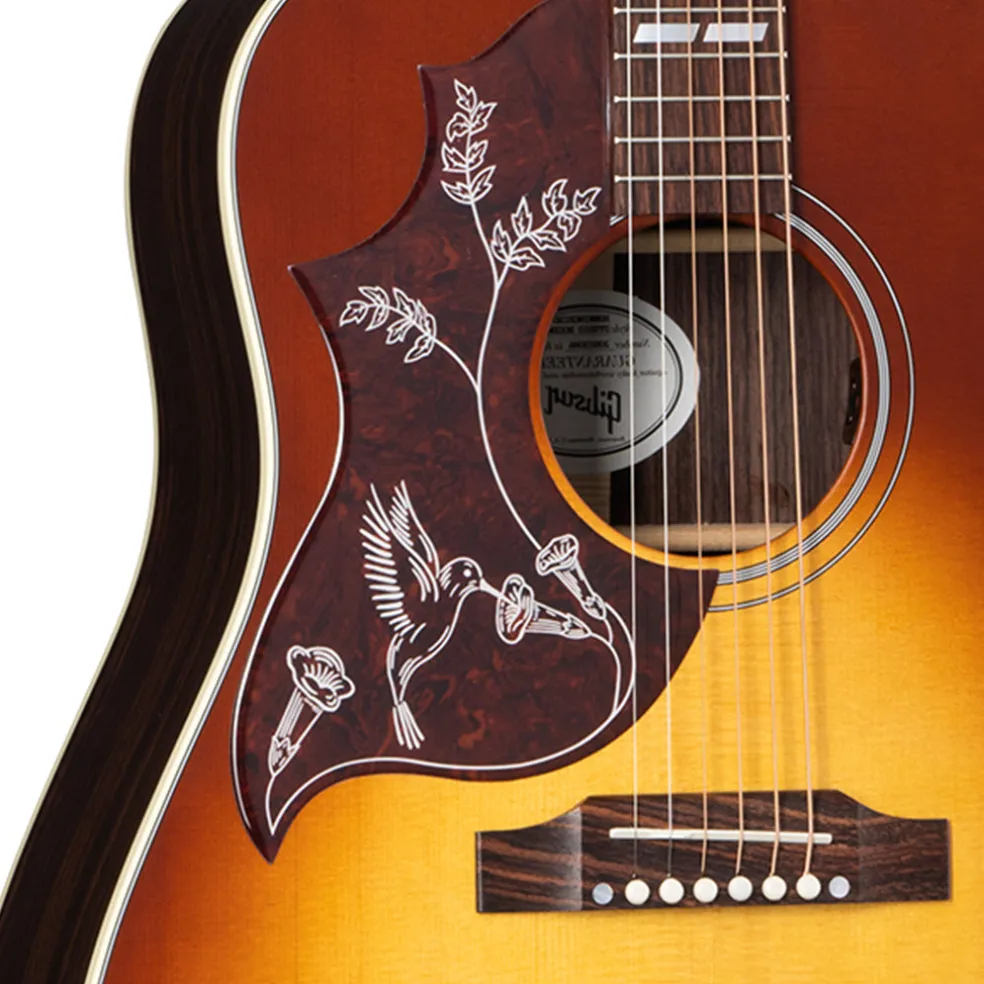 The Hummingbird™ Studio Rosewood continues Gibson’s long history of producing world-famous square shoulder body designs, such as the Hummingbird, Dove™, and Songwriter models. The updated Hummingbird Studio Rosewood is hand-built using all solid tone woods and is equipped with an Advanced Response profile Utile neck for smooth, easy playability. It features a full-depth body for enhanced tonal response and a satin nitrocellulose finish, giving it the look and feel of a long-treasured musical companion. Available in Satin Natural and Satin Rosewood Burst finishes (including a left-handed model), the Hummingbird Studio Rosewood has an L.R. Baggs™ Element Bronze active under-saddle piezo pickup for easy studio-quality plug-and-play anywhere. Packaged in an included hard-shell case for portability, this is the Hummingbird you’ve been waiting for!