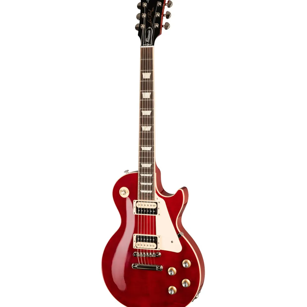 The Gibson Les Paul Classic combines the early 60s style Les Paul model with some functional and time-tested modifications. As expected, the LP Classic is crafted with a mahogany back and maple top coupled with a slim taper mahogany neck and bound, rosewood fingerboard. Burstbucker 61R & 61T zebra, open-coil pickups provide classic Gibson tones from the era with a bit of extra punch thanks to the open coils. The control assembly features 4 push-pull pots which provide choices of coil tapping, phase switching and pure bypassing for functional and versatile sonic variety.