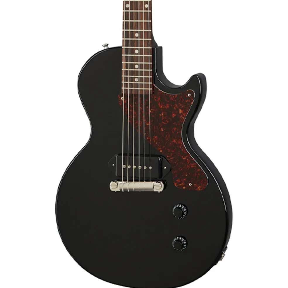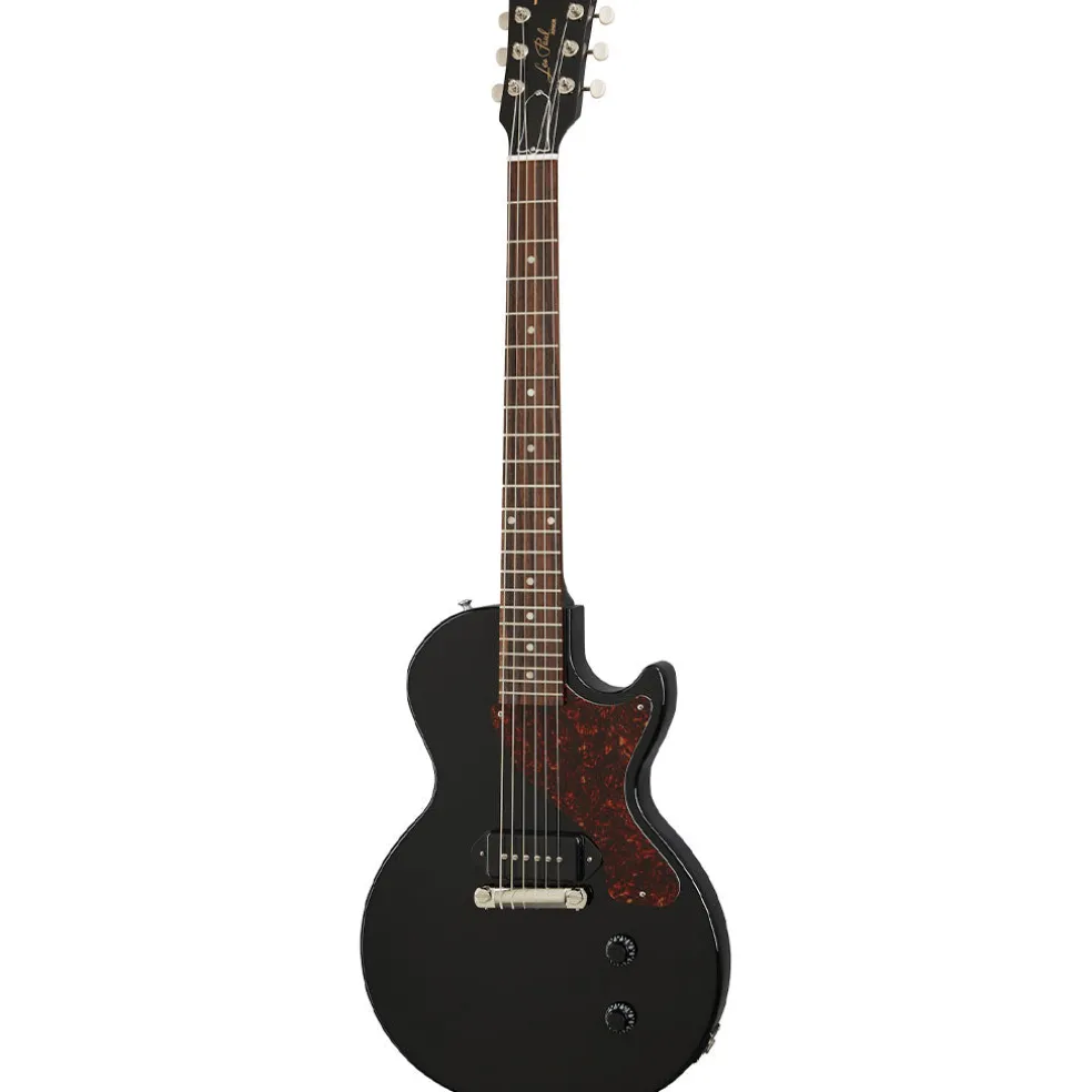 The Les Paul Junior returns to the classic design that made it relevant, played and loved — shaping sound across generations and genres of music. It pays tribute to Gibsons Golden Era of innovation and brings authenticity back to life. Introduced as an affordable option for students and beginners in 1954, the Les Paul Junior has been embraced by musicians for over 60 years. The single cutaway slab mahogany body, single dogear P-90 pickup, single volume and tone controls all add up to a whole lot of guitar which is greater than the sum of its parts. The fat 50s-style neck profile and wraparound bridge add to the equation for rock solid tone. Available in Tobacco Burst and the new Ebony finish with tortoise shell pickguard.