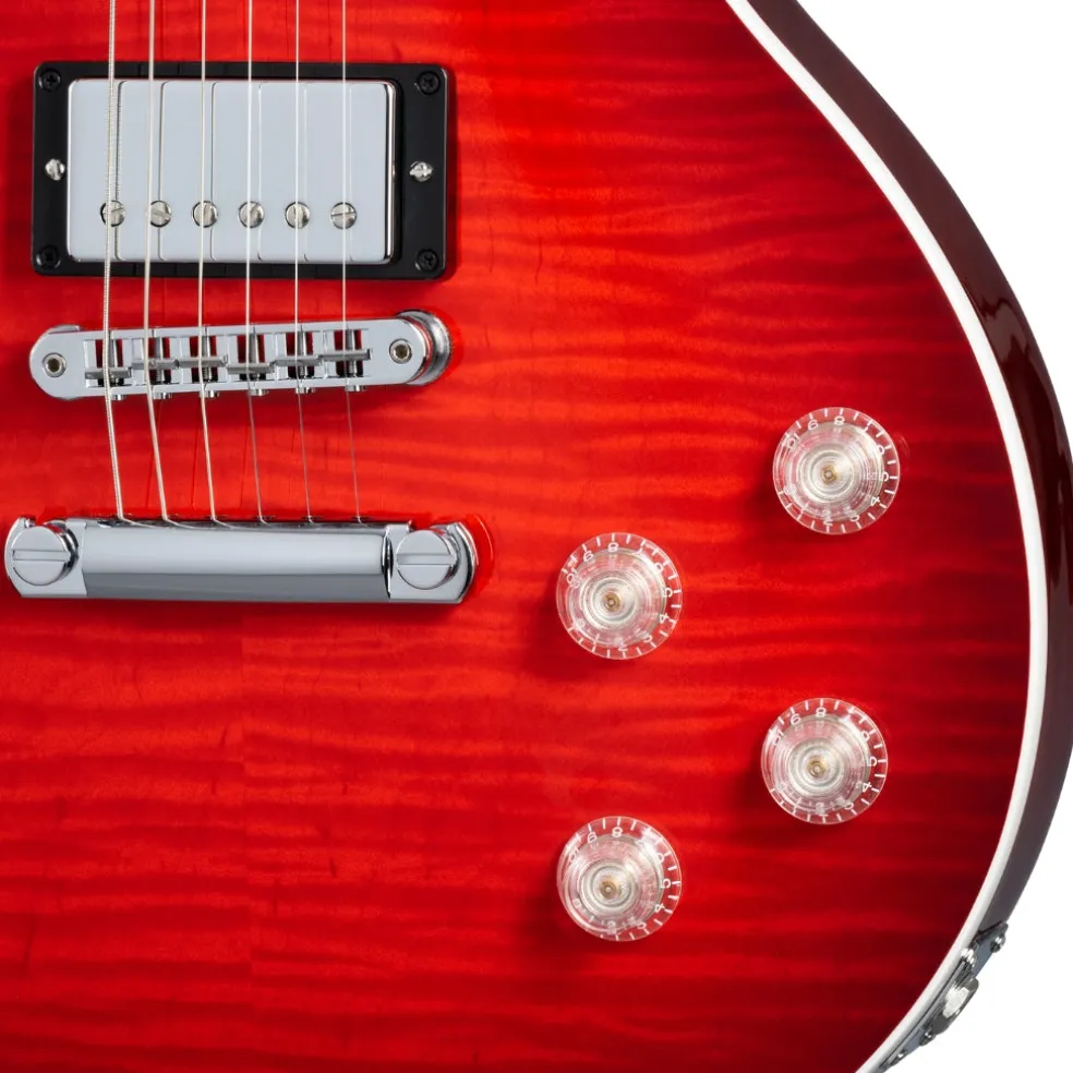 The new Gibson Les Paul™ Modern Figured incorporates many contemporary updates players have embraced, such as a lighter-weight mahogany body with a figured AAA maple top and a comfortable, fast-playing SlimTaper™ neck profile. The Modern fingerboard is crafted with genuine ebony and has a compound radius for lower and cleaner action. The neck/body joint features the Modern Contoured Heel for effortless access to the highest frets and maximum sustain and stability. Hardware upgrades include Grover® locking Rotomatic® tuners, clear Top Hat knobs, and Burstbucker Pro™ and Burstbucker Pro + pickups. The control assembly features four push-pull pots to switch between Gibson humbucker™ and single coil P-90 sounds, both of which have defined so many genres of music across multiple generations since we invented them, along with phase switching and pure bypass for additional sonic variety. The new Gibson Les Paul Modern Figured is here to shape sound for future generations.