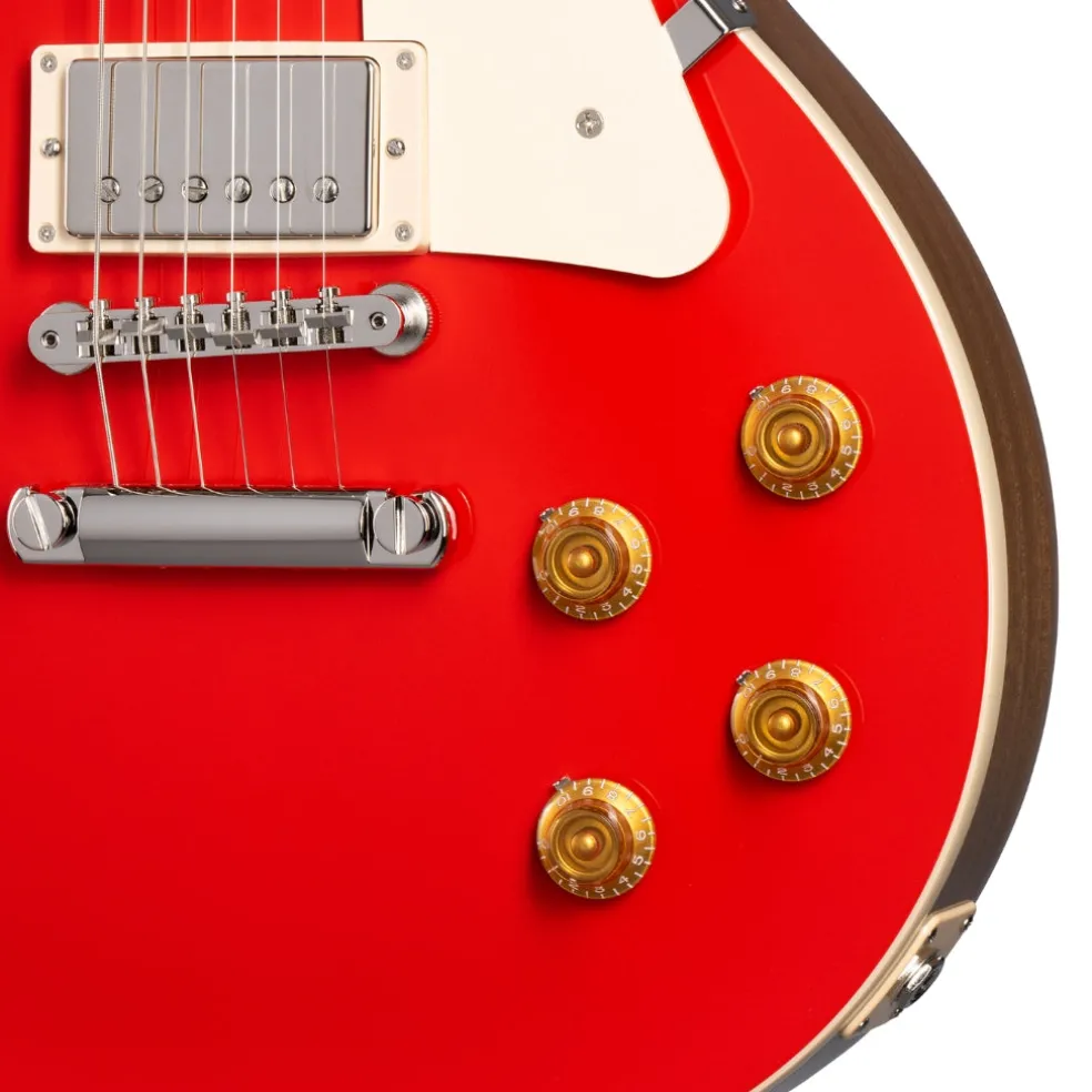 The new Les Paul Standard 50s Plain Top returns to the classic design that made it relevant, played, and loved – shaping sound across generations and genres of music. It pays tribute to Gibson’s Golden Era of Innovation and brings authenticity back to life. The Les Paul Standard 50s Plain Top has a solid mahogany body with a plain maple top and a mahogany neck with a rounded, 50s Vintage profile with a rosewood fingerboard and trapezoid inlays. It’s equipped with an ABR-1, the classic-style Tune-O-Matic™ bridge, an aluminum Stop Bar tailpiece, Vintage Deluxe tuners with Keystone buttons, and gold Top Hat knobs. The calibrated Burstbucker™ 1 (neck) and Burstbucker 2 (bridge) pickups are loaded with Alnico 2 magnets and wired to audio taper potentiometers and Orange Drop™ capacitors. Now available in vivid custom colors, a hardshell case completes the package.