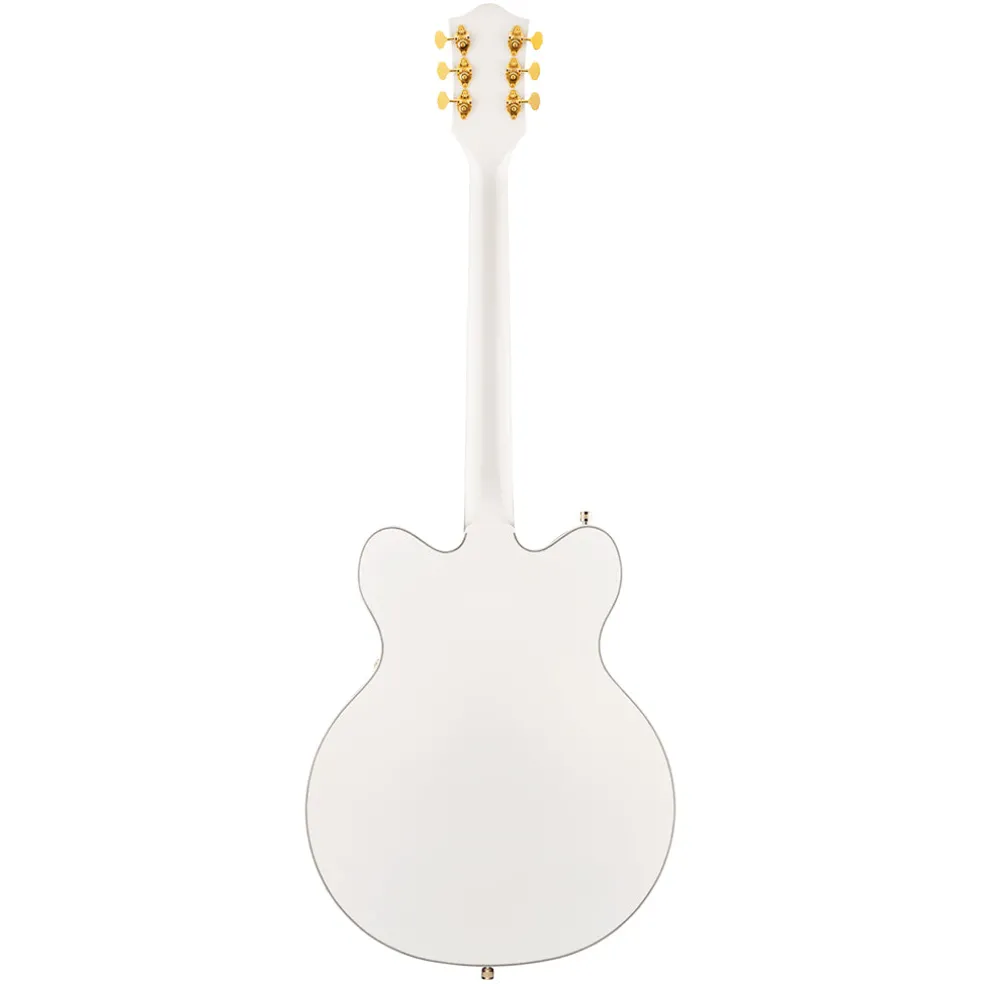 Alive and resonant, this G5422TG also features a versatile upgraded control layout including master volume with treble bleed circuit, master tone, individual pickup volume controls and three-position pickup toggle switch, oversized bound F-holes, multi-ply body binding, smaller late-50s G6120 bound headstock, vintage-style open-back standard tuning machines, Graph Tech® NuBone® nut, pearloid Hump Block inlays, secured Adjusto-Matic™ bridge and a Bigsby® B60 vibrato tailpiece.