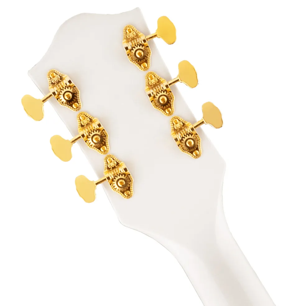 This resplendent instrument comes in a standout Snowcrest White finish, complete with gold pickguard and gold hardware.