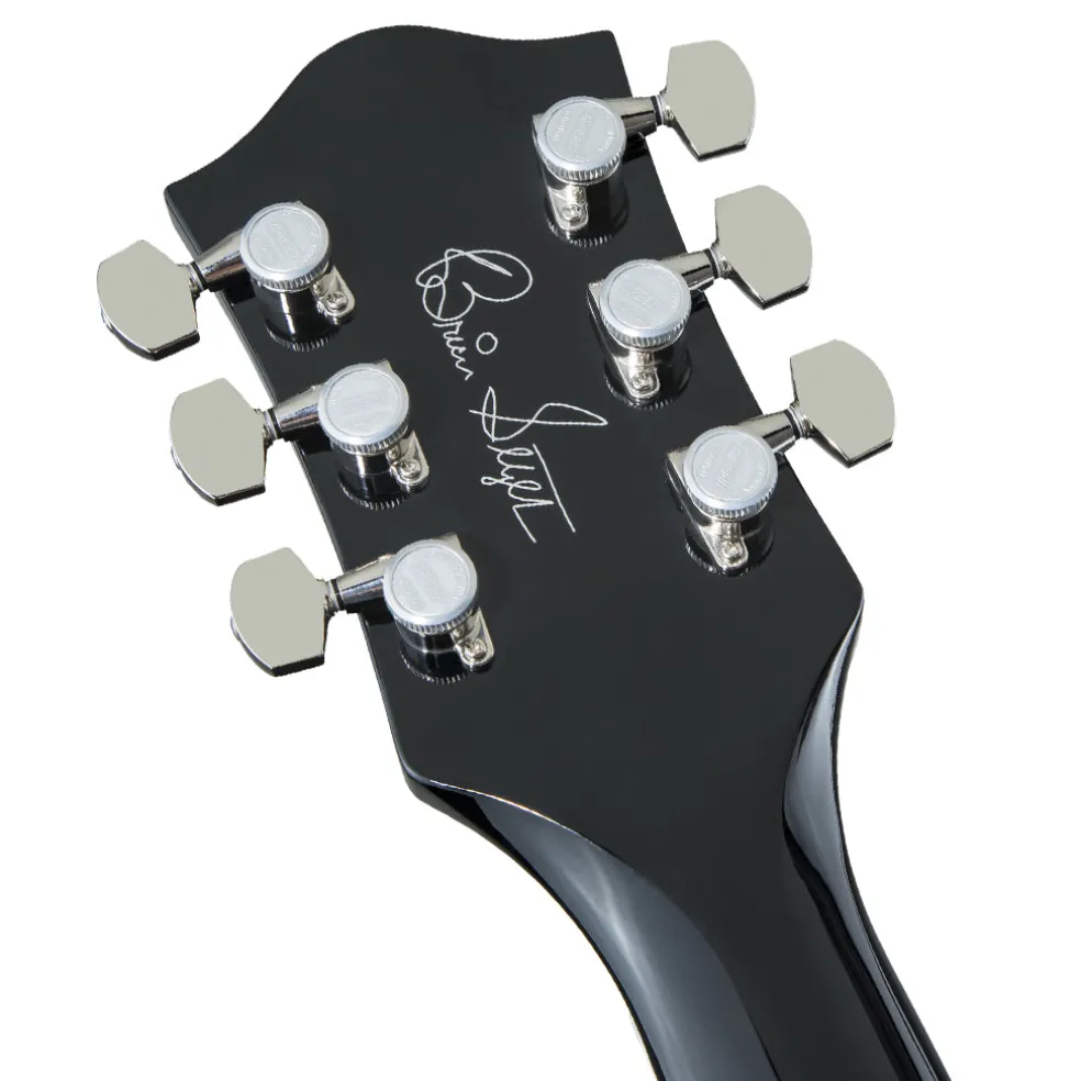The single-cutaway hollow body in stunning Black Lacquer is equipped with an arched maple top with 1959 trestle bracing and oversized F-holes for improved sonic projection. The maple neck has a 9.5-12” compound radius ebony fingerboard with rolled edges for comfortable chording or speedy riffing across 22 medium frets and mother of pearl Neo-Classic™ thumbnail inlays. Dual TV Jones® Brian Setzer Signature Filter’Tron™ pickups deliver tight and punchy lows with a slightly hotter output that captures Brian’s iconic lively tone.