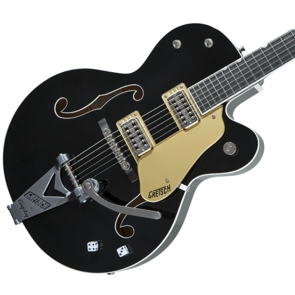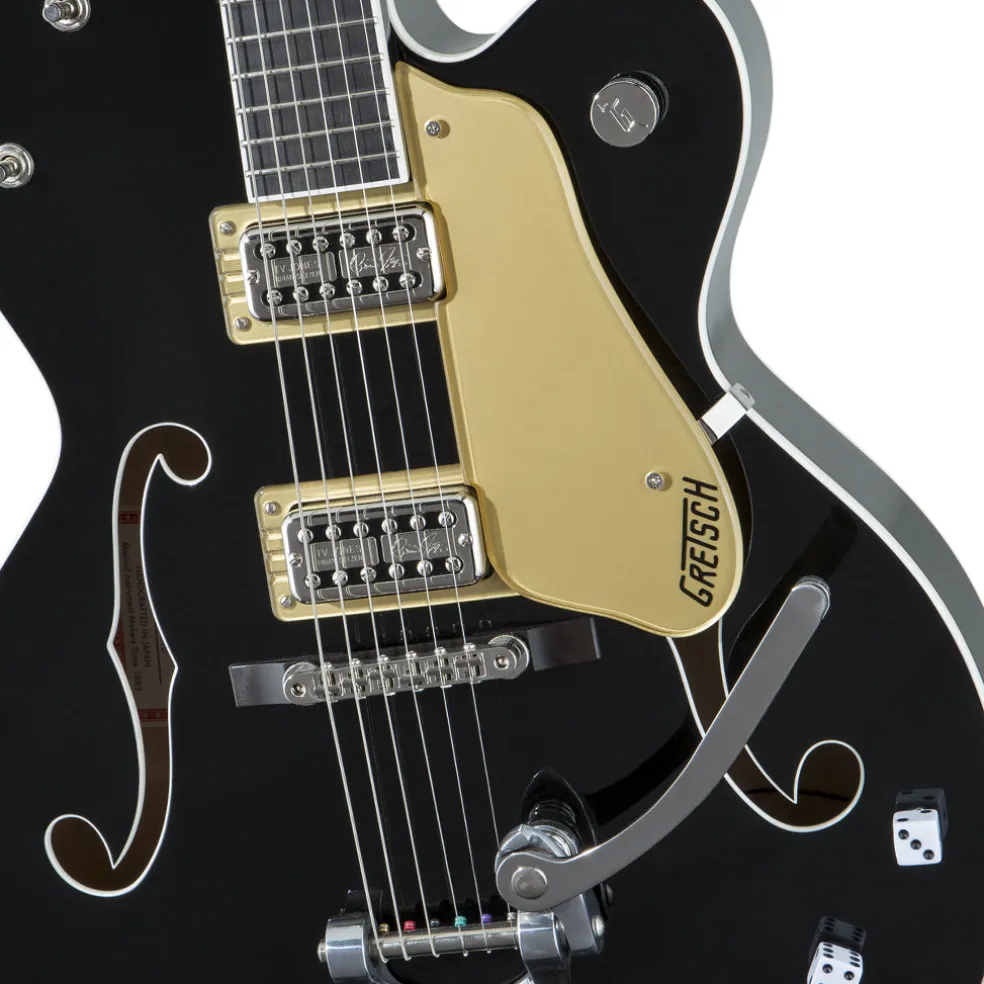 Other performance-enhancing features include period-correct control locations with a three-position pickup toggle switch, three-position tone switch, master volume control with treble bleed circuit and individual bridge and neck pickup volume controls, Adjusto-Matic™ bridge with pinned rosewood base, Bigsby® B6C vibrato tailpiece, Delrin® nut and Gotoh® locking tuning machines.