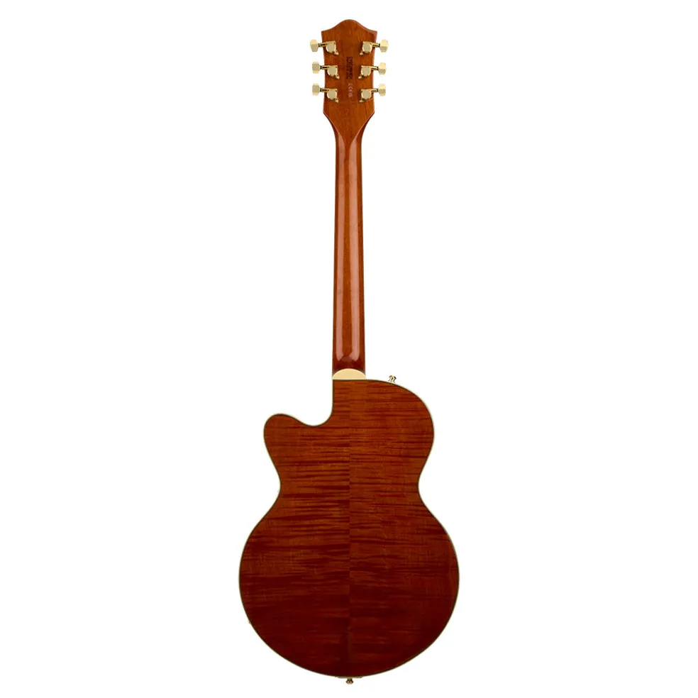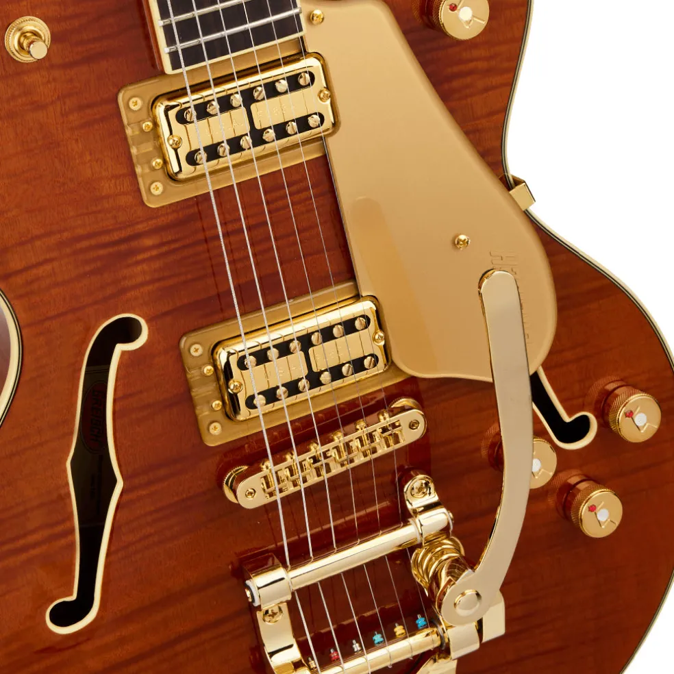 Featuring a beautiful flame okoume single-cutaway body, rosewood fingerboard, USA Full’Tron™ pickups, jeweled G-Arrow control knobs, and gold hardware, the elegant style and premium sound quality of this Limited Edition Broadkaster® Jr. is sure to turn heads.