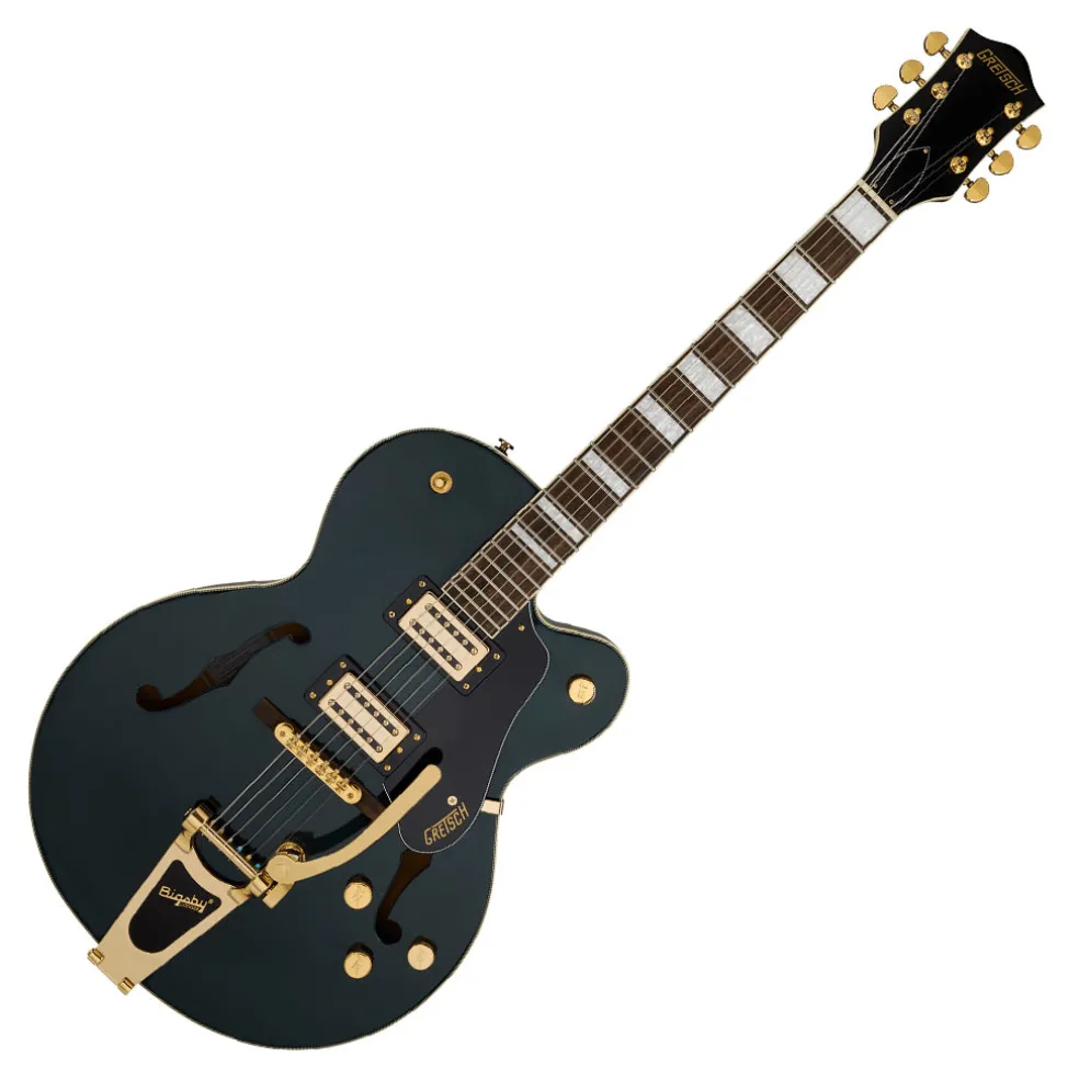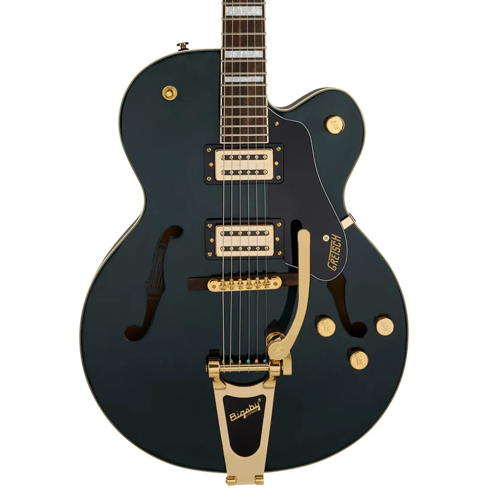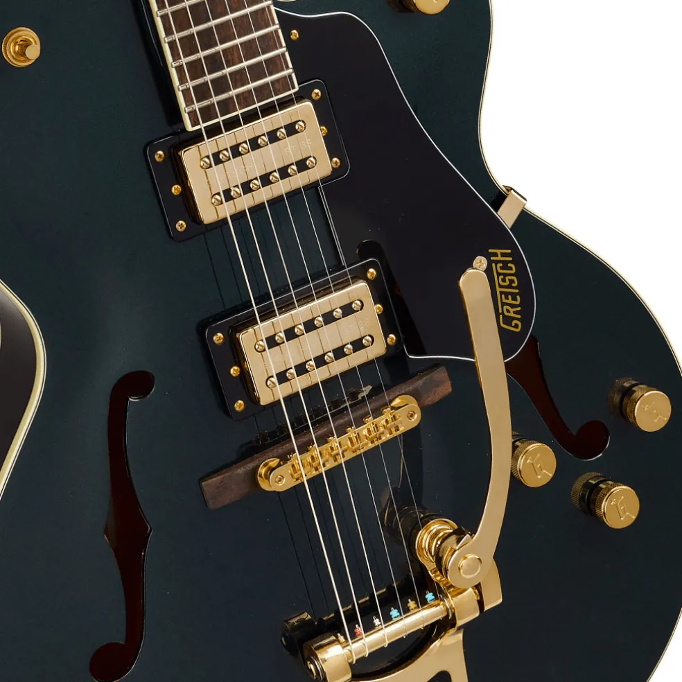 The Limited Edition G2420TG Streamliner Hollow Body Single-Cut with Bigsby® is designed for the modern guitarist who yearns for something beyond the norm. Featuring gleaming gold hardware, metal G-Arrow control knobs, and pearloid Big Block inlays, the G2420TG’s modern sonics, updated electronics and authentically elegant style create the latest iteration of That Great Gretsch® Sound!™