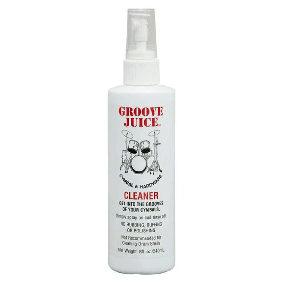 Groove Juice Cymbal Cleaner is the original spray on rinse off cymbal cleaner an easy to use no mess cymbal cleaner.