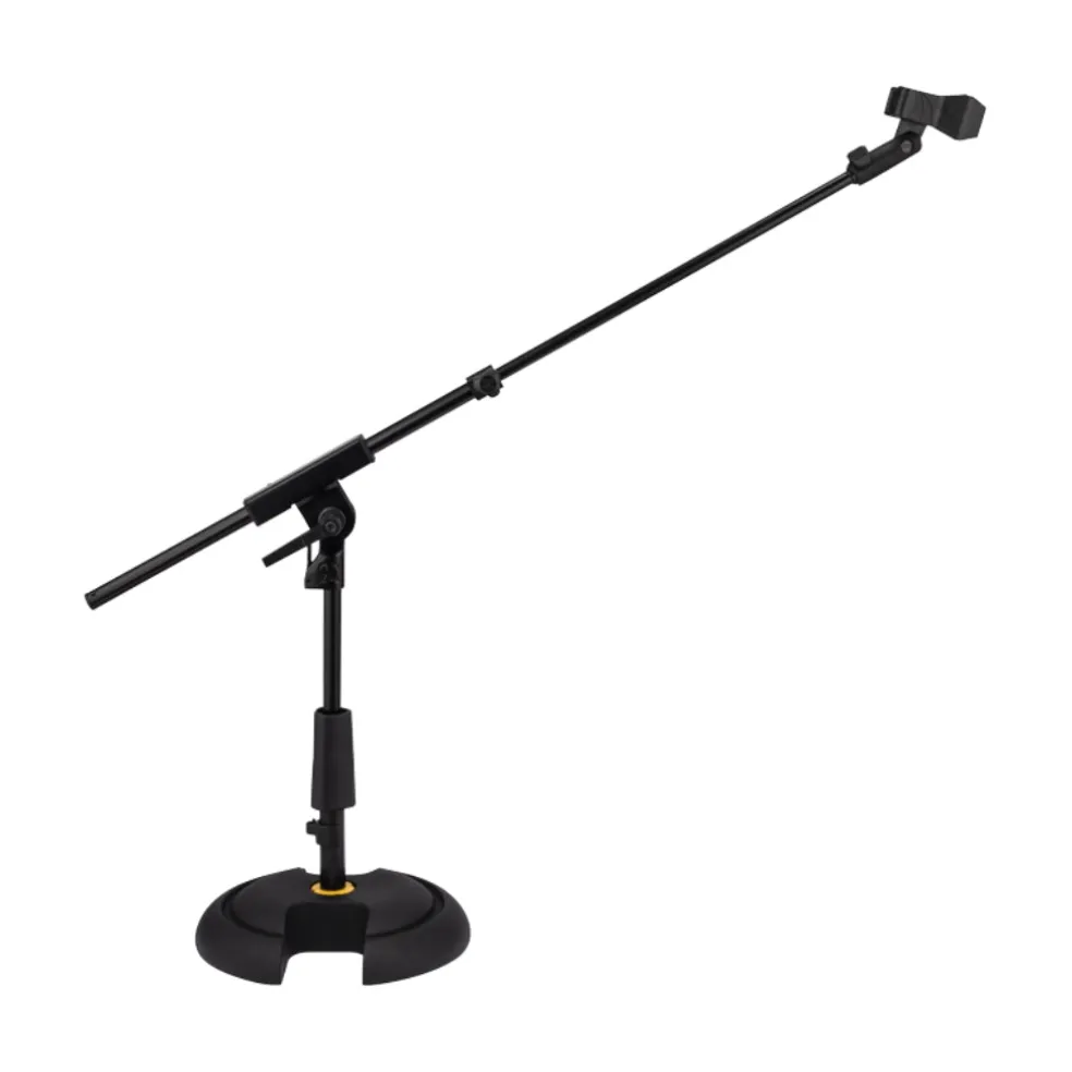 The Hercules MS120B PRO Low Profile Mic Stand with telescoping boom is ideal for drum and amp microphone applications. This stand comes equipped with a large Hercules “H” base that ensures stability, even with a heavy microphone fully extended on the telescopic boom arm. The versatile boom and its heavy-duty power lock lever offer secure positioning of your optimized mic placement in any setup.