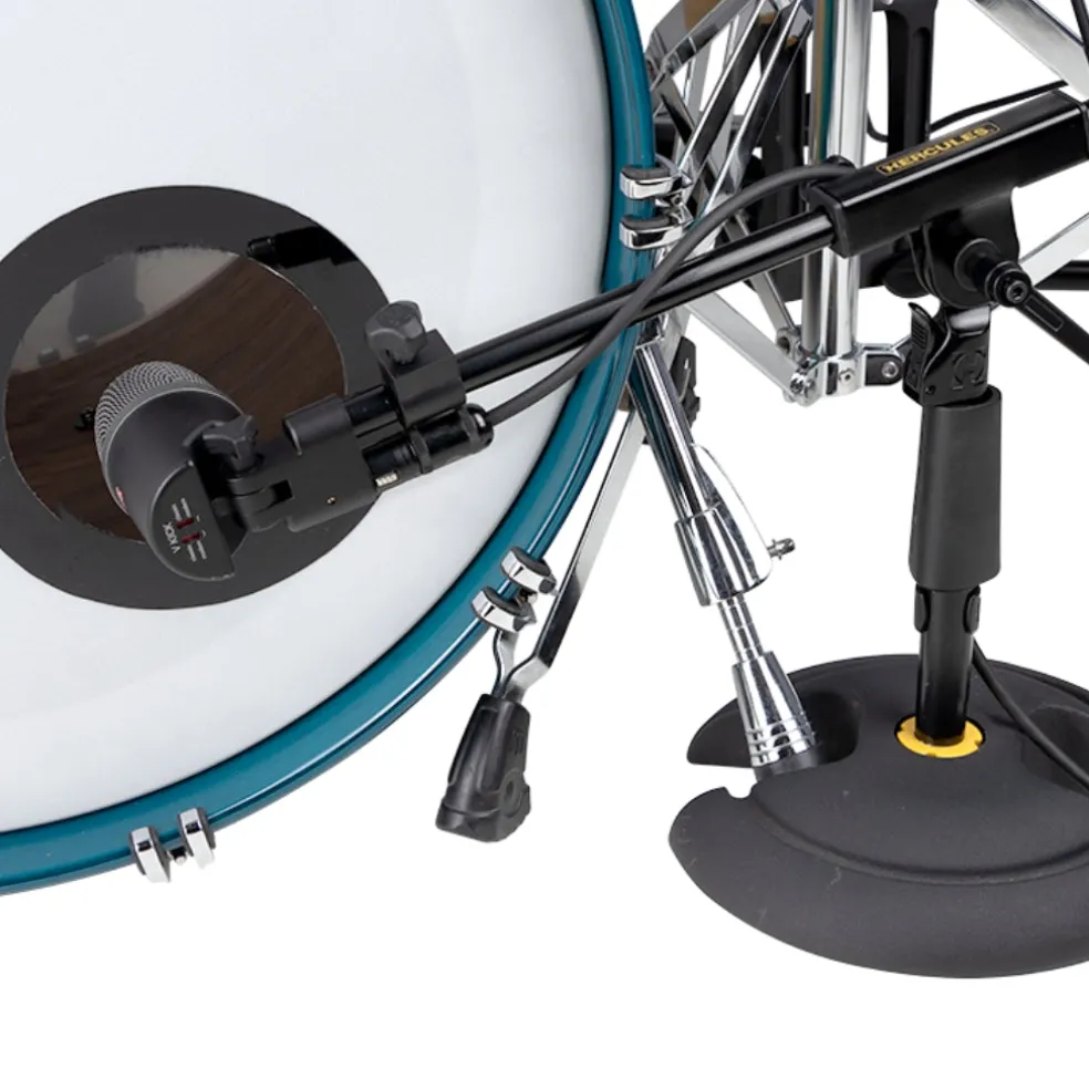 - Low profile height adjustment with short telescopic boom arm that is space saving for micing bass drums, snare drums, floor toms, amplifiers, and more.