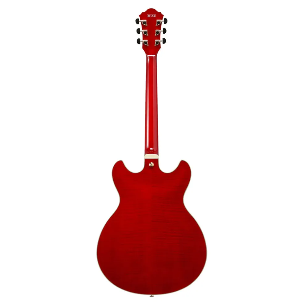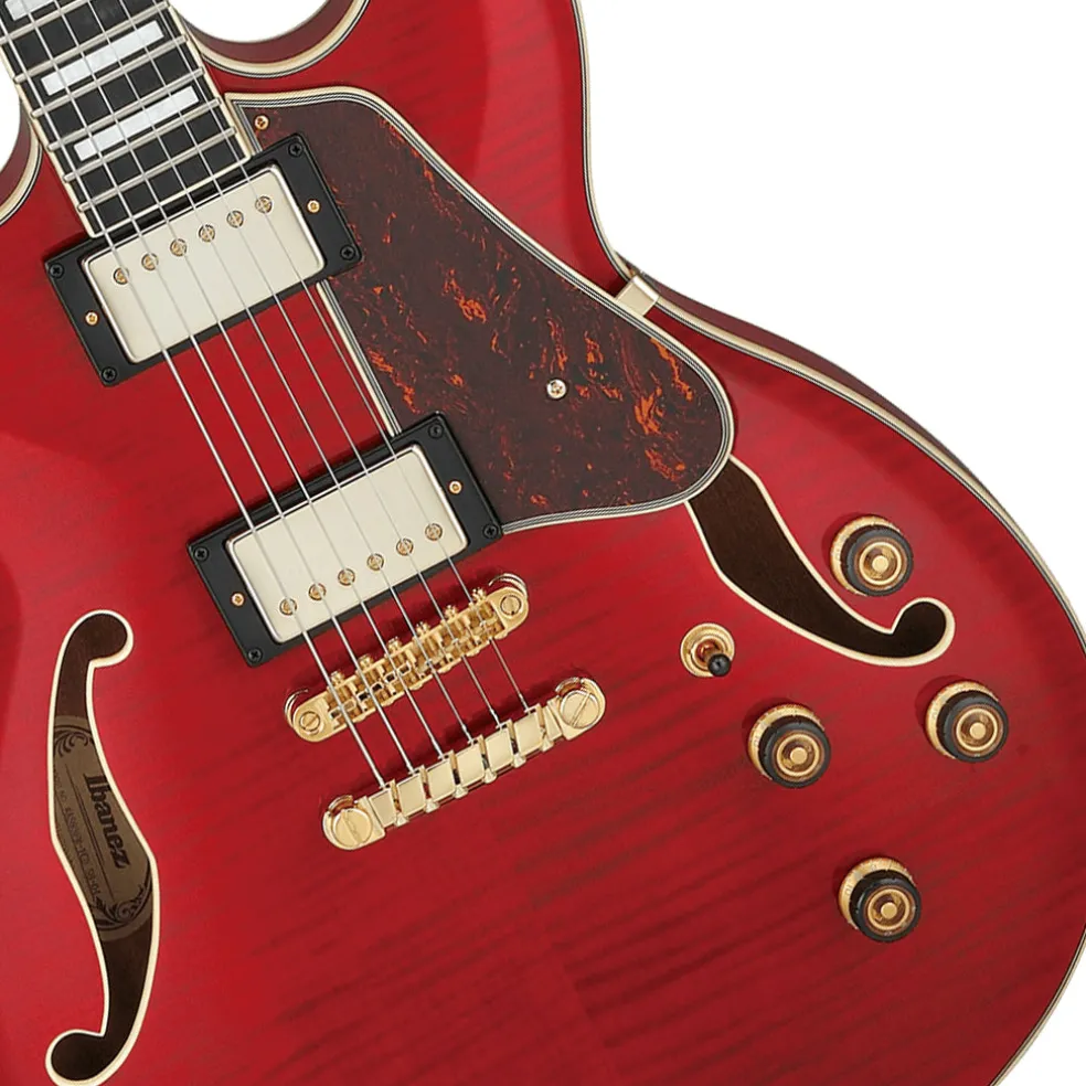 The left handed AS93FM features a 3-Piece Nyatoh/Maple neck that provides a rich mid-low end and great resonance and a Macassar Ebony fretboard that produces tight lows and mid range along with strong attack in the highs and quick response with rich sustain. The Gibraltar Performer bridge provides rich sustain and tuning stability. The low-positioned saddles promise comfortable playability. The Quik Change III tailpiece enables faster and easier string changing.