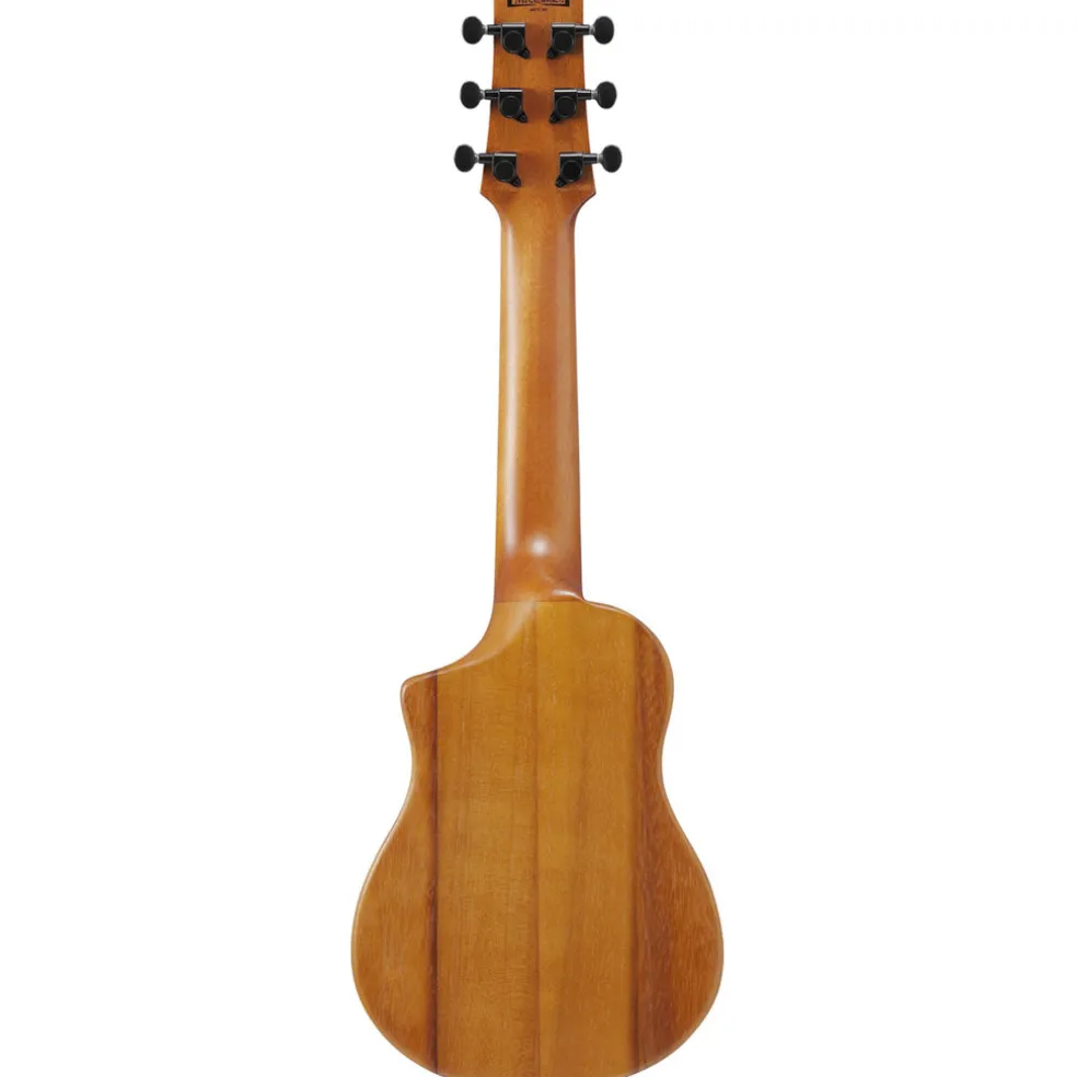 The AU series features very unique construction. Rather than being built with a separate top, sides, and back like most ukuleles, the body of the AU starts as a solid block of wood and is routed out, so that the back and sides are a single piece of wood. A top is then added to complete the body. This construction method gives these instruments a unique sound and brilliant playability. They also utilize distinctive features such as a Stereo Sound Port, Elevated Comfort Armrest, and Edgeless Comfort Heel.