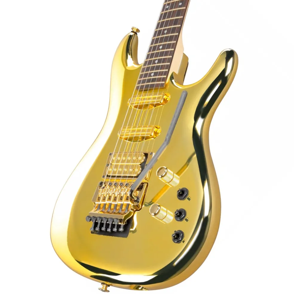 Following the deeply coveted JS1 Chrome Boy, Ibanez and Joe Satriani now present the Japanese-made JS2 edition of Joe’s signature guitar. Boasting a seriously opulent finish, this unique axe comes gilded from top to bottom. Supplied by premium fret-maker Jescar, all twenty-two frets are made of EVOgold and have received Ibanez’s Prestige Fret Edge treatment to make sure they feel as smooth as they look. The JS-profile neck, meanwhile, lifts the playability to a degree beyond compare, while the sumptuous finish seals a familiarly contoured, exceptionally snug alder body.