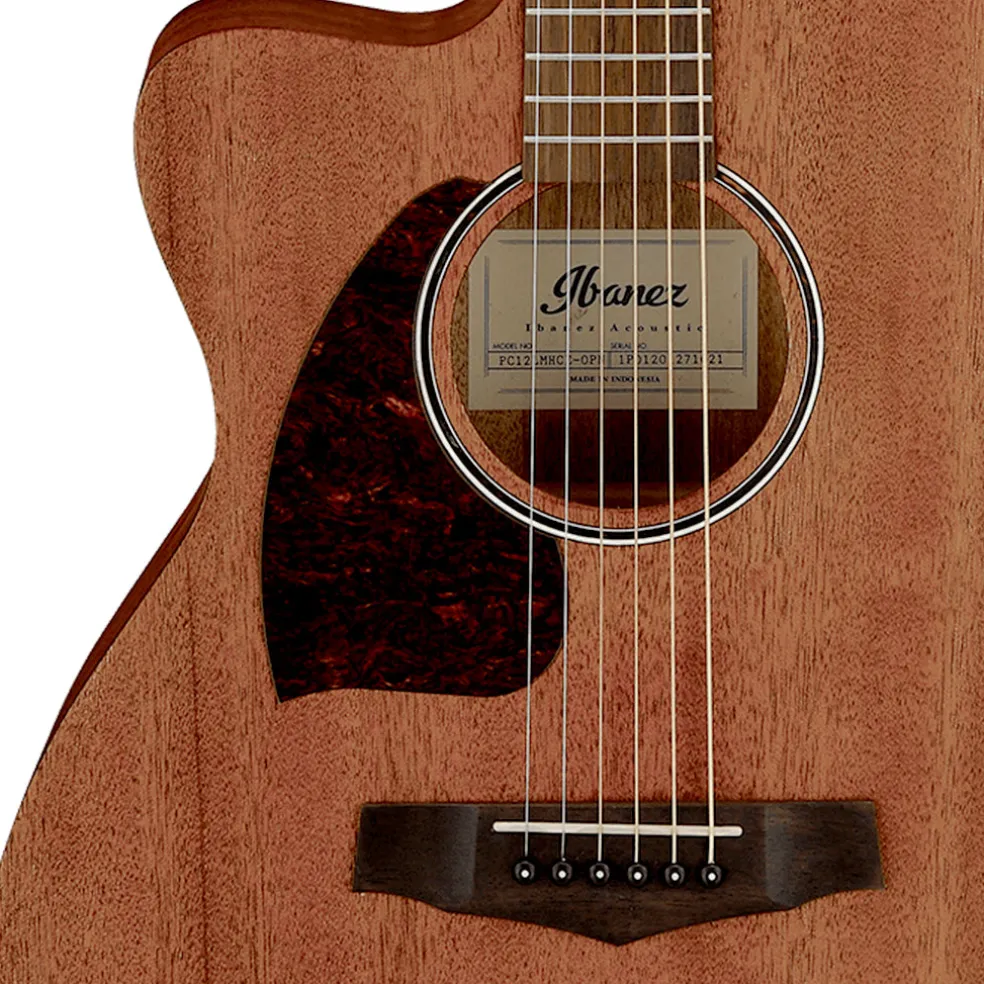 The Ibanez PC12MHLCE is a left handed acoustic guitar that features an Okoume top, back, and sides that generate a woody, warm tone when the guitar is played softly or finger-picked and provide punchy high-mids with a clear projection when strummed. The Nyatoh neck provides a rich mid-low end and a Laurel fretboard provides a rich and warm tone. The Laurel bridge transfers string vibration directly to the body, delivering a natural and warm tone, and comes with the Advantage pins that are easier to take out and easier to put in than standard pins. A special bulb-shaped end makes the pin easy to grip and also prevents the pin from being pushed in too far. Best of all, with Advantage the pin and string stay put. This guitar is equipped with the AEQ-2T preamp that is specifically-designed to adjust the frequencies of a bass and Treble, and allows operation of the built-in tuner without the instrument being plugged in.