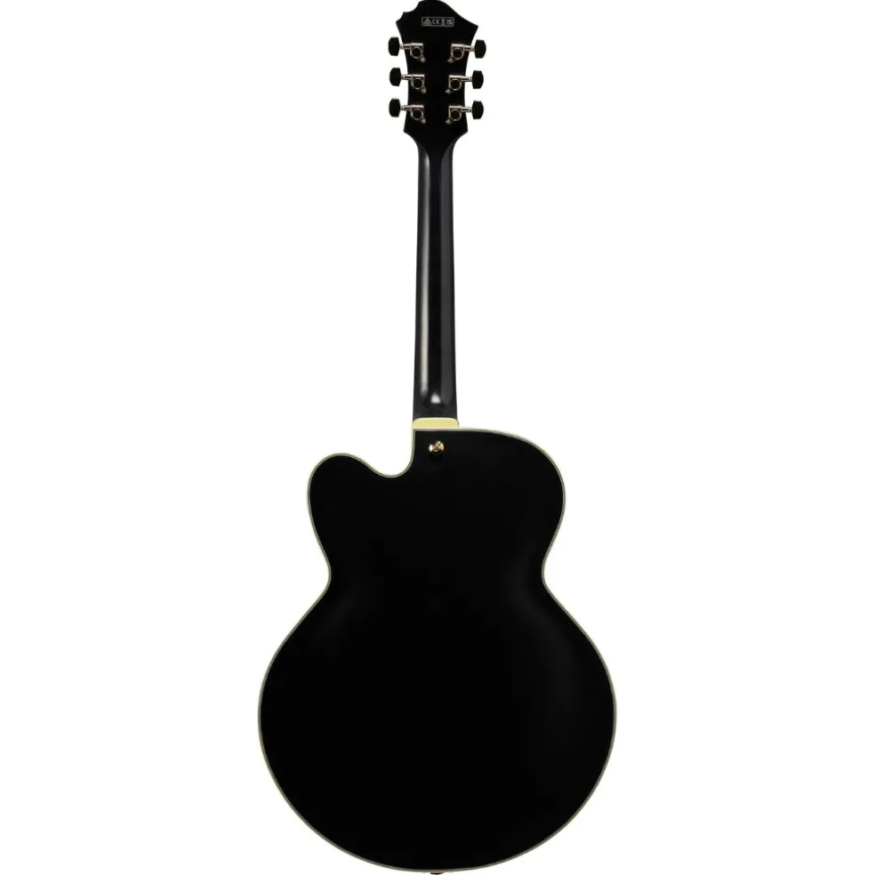 Gold-tinged archtop appointments—such as the floating TOM-style bridge, trapeze tailpiece, and reliable Ibanez tuners—shine under stage lights, ensuring both aesthetic appeal and performance reliability.