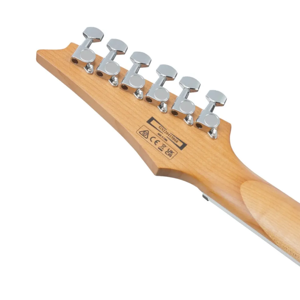 If the poplar burl Art Grain top of the Ibanez GIO GRG220PA1 doesn’t knock you out the moment you pick it up, the sonic heat it produces definitely will. While rocking all-nighters onstage, this gorgeous solidbody’s okoume body (a popular mahogany substitute) keeps you comfy and resonant, while its burl top and shiny polyurethane finish truly punch up the visuals for in-person appearances. A pair of Classic Elite humbuckers and a flexible 5-way pickup selector are located on the deck, making it simple to tune in a variety of contemporary sounds, from chimey cleans to harsh distortion. The GRG220PA1 features a fast-action maple neck with an exquisite bound purpleheart fingerboard, a T106 bridge for optimal tuning stability, and 24 jumbo frets for the kind of effortless shredding that helped put Ibanez on the metal map. The final touch is a set of white sharktooth inlays. The Ibanez GIO GRG220PA1 is a really good guitar, whether you’re just starting out or looking to add to your collection.