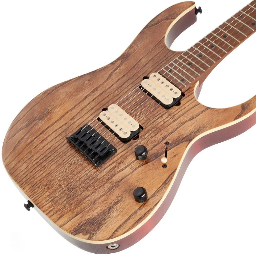 Ibanez presents the RG421HPAM-ABL, a completely modern guitar for quick and demanding work, with a magnificent ash top finished in Antique Brown Stained Low Gloss that beautifully contrasts the cream-colored pickups. For incredibly quick and incredibly comfortable playability, the roasted maple is also pure nature shaped with a flat 15.75-inch fretboard radius, 24 jumbo frets, and covered in satin-gloss.