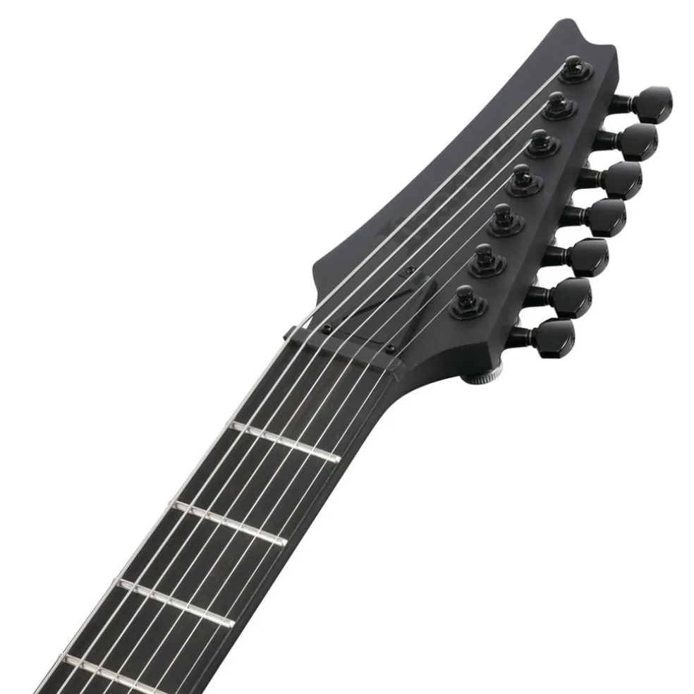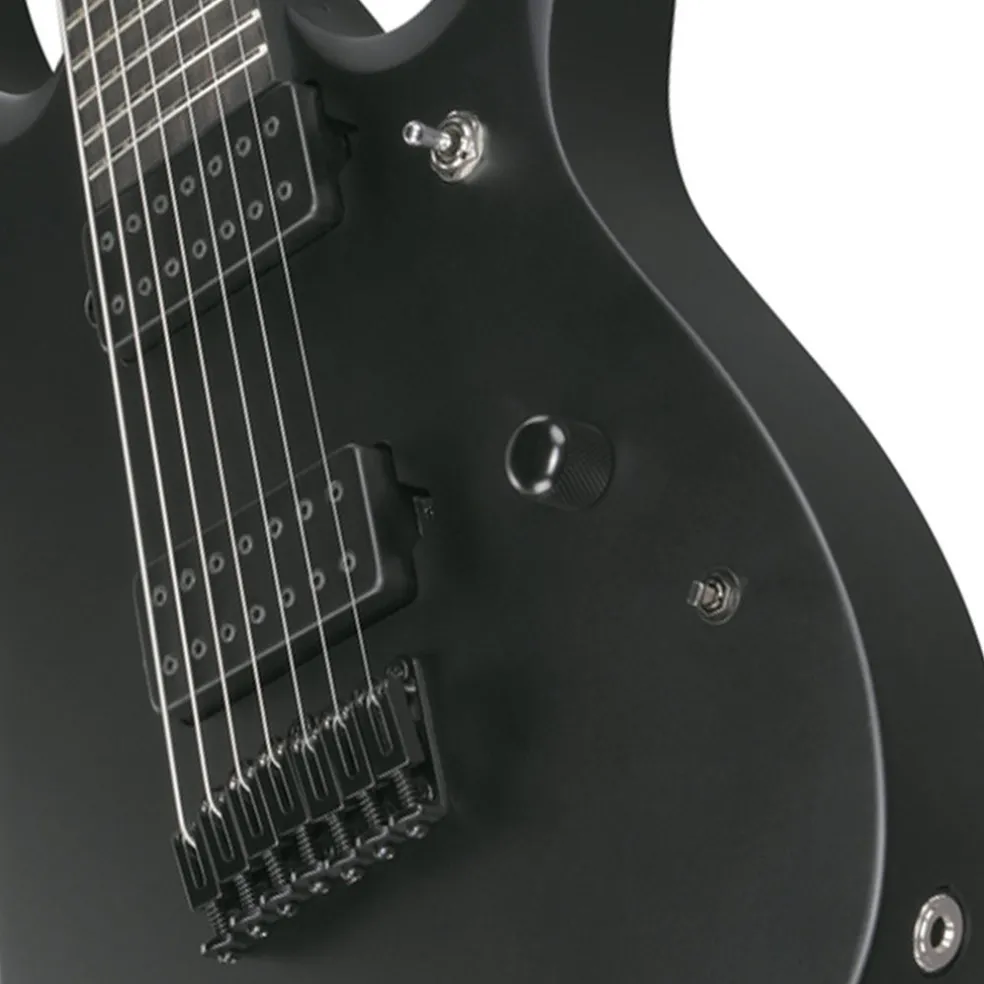 The Iron Label line was originally developed with metal and nothing but metal in mind. Ibanez modded and tweaked until they got to the heaviest-hitting metal axes ever built. They’re purposefully spartan, and you won’t find a feature here that doesn’t contribute directly to a bone rattling, earth shattering tones these guitars pump out. Carrying forward that same philosophy, the next generation of Iron Label guitars take this raw metal energy to a completely new level. They sport totally blacked out looks, and their supercharged electronics amounting to some of the heaviest-swinging metal axes Ibanez have ever produced.