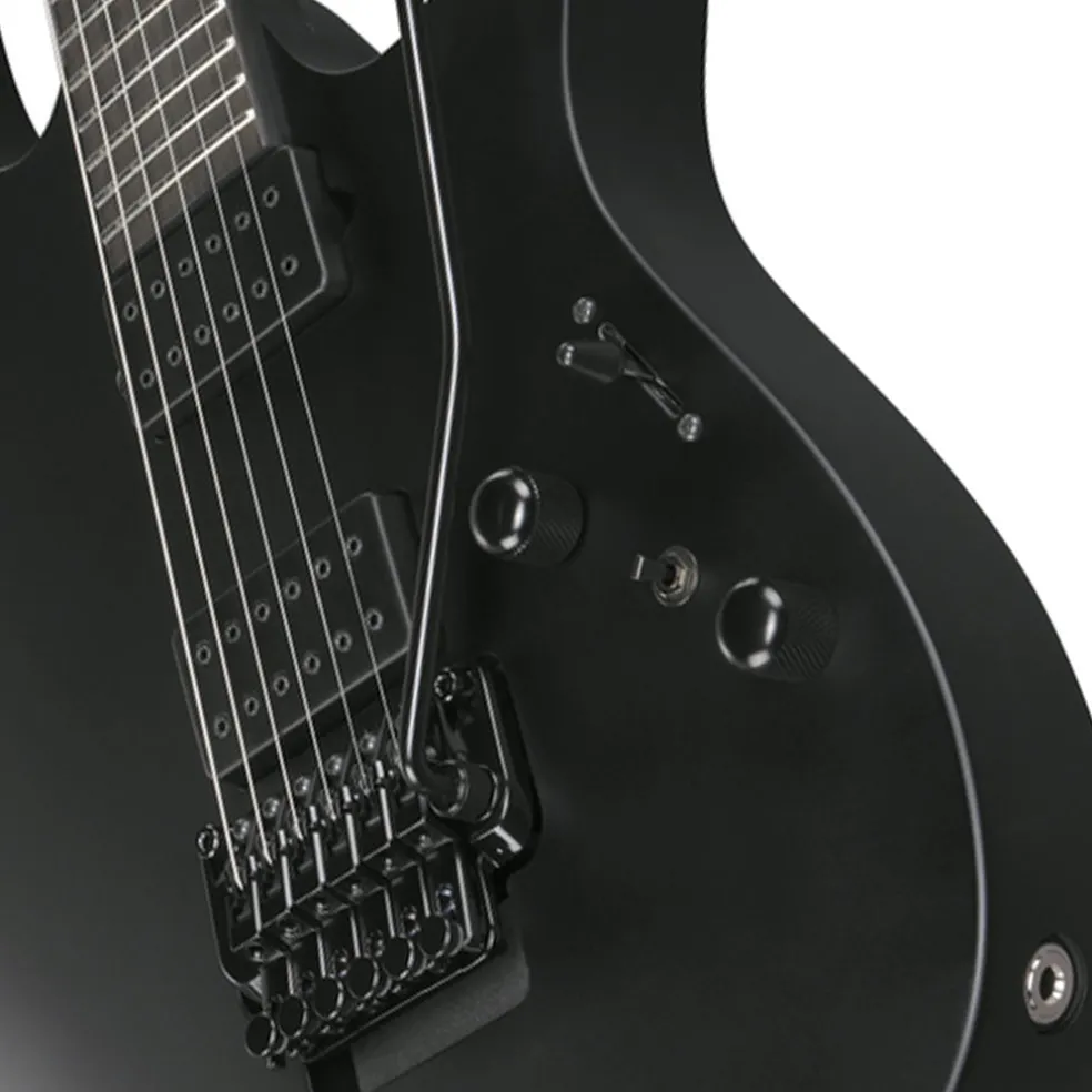 The Iron Label line was originally developed with metal and nothing but metal in mind. Ibanez modded and tweaked until they got to the heaviest-hitting metal axes ever built. They’re purposefully spartan, and you won’t find a feature here that doesn’t contribute directly to a bone rattling, earth shattering tones these guitars pump out. Carrying forward that same philosophy, the next generation of Iron Label guitars take this raw metal energy to a completely new level. They sport totally blacked out looks, and their supercharged electronics amounting to some of the heaviest-swinging metal axes Ibanez have ever produced.
