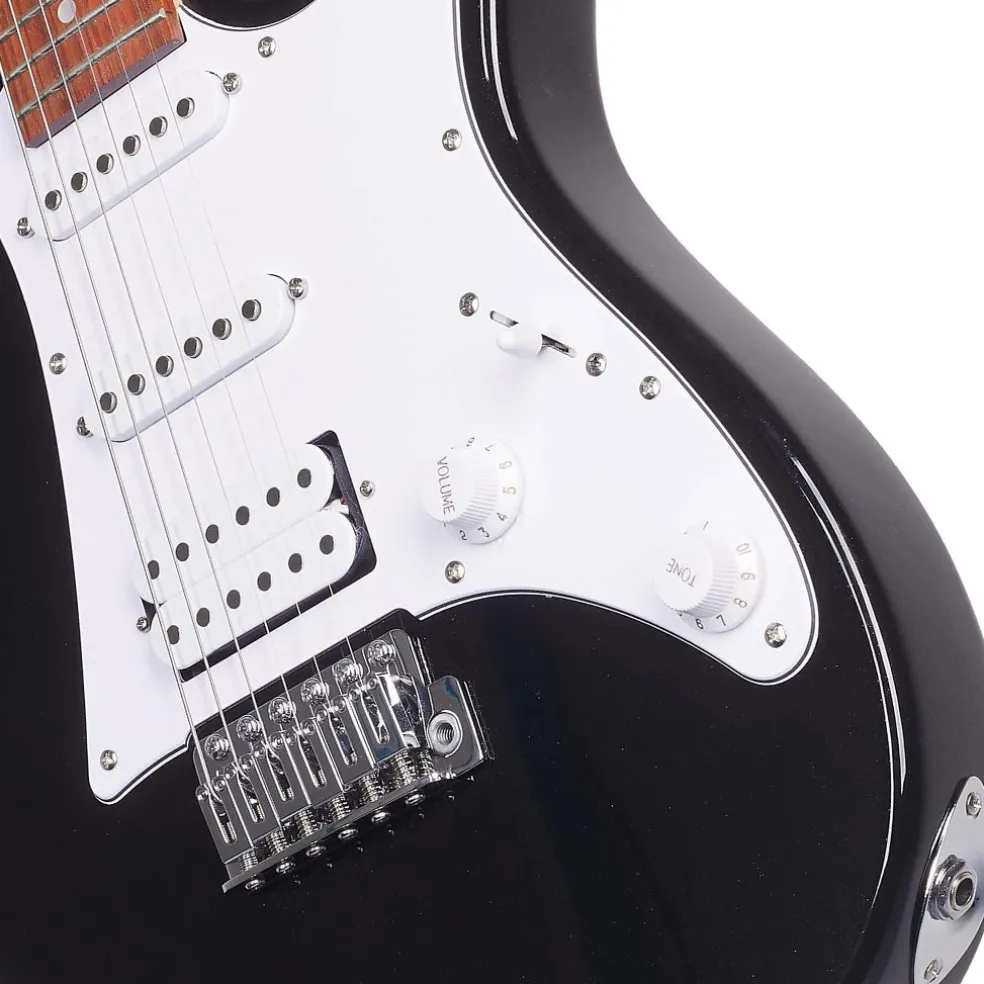 The GRX40 features a poplar body fitted with a Maple GRX neck tha features a Jatoba fretboard, medium frets and white dot inlays. The T-106 tremolo bridge is a simple but effective tremolo bridge for beginners. Electronics include three Infinity R pickups with a 5-way selector switch for a variety of tonal options, right at your fingertips.
