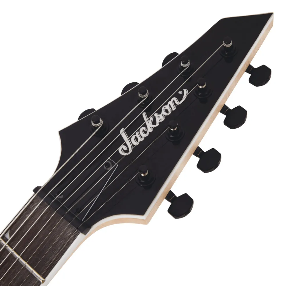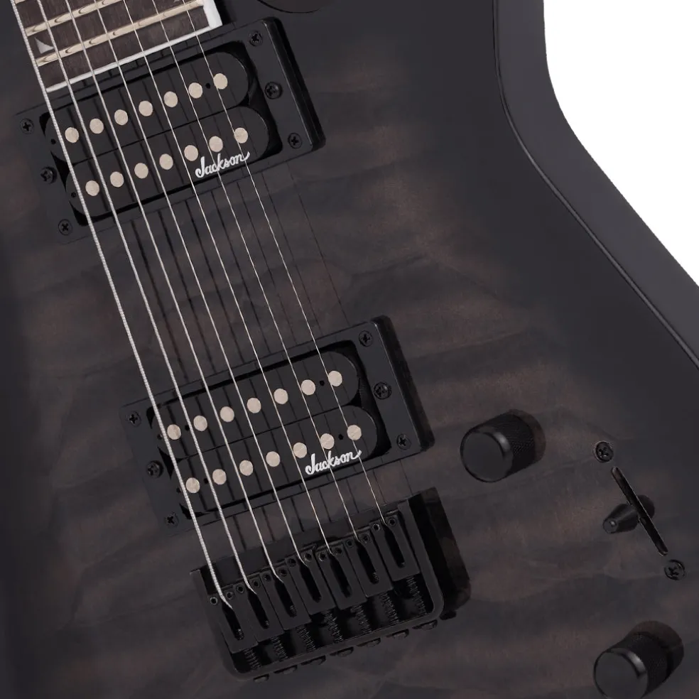Powered by direct mount dual Jackson high-output 7-string humbucking pickups, the JS22Q-7 DKA HT is also equipped with a three-way pickup blade switch, single volume and tone controls, string-through-body fixed Jackson HT7 bridge and sealed die-cast tuners.
