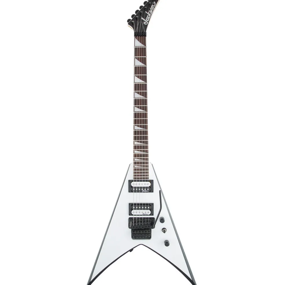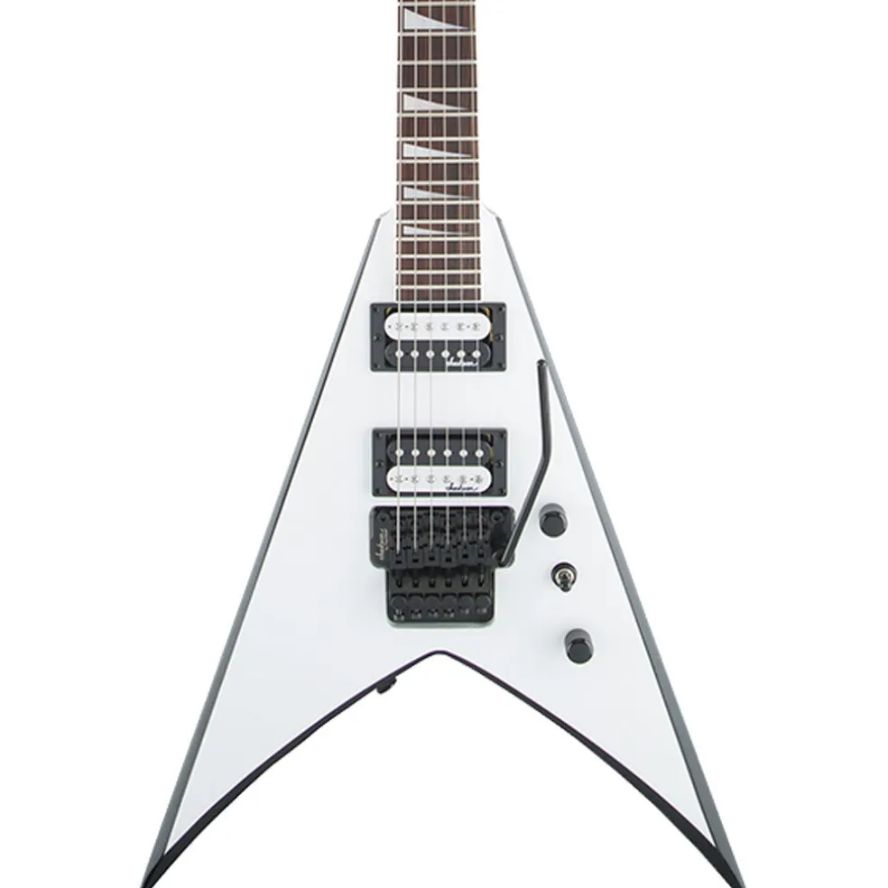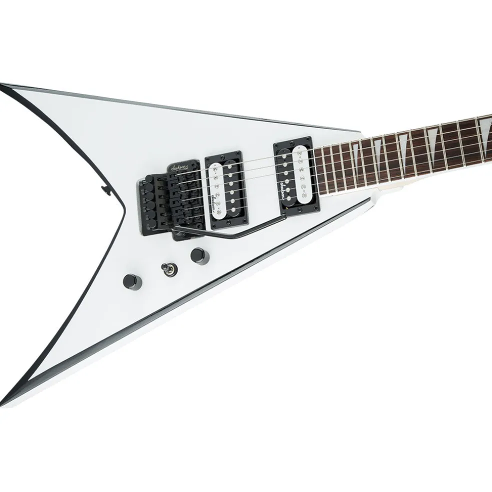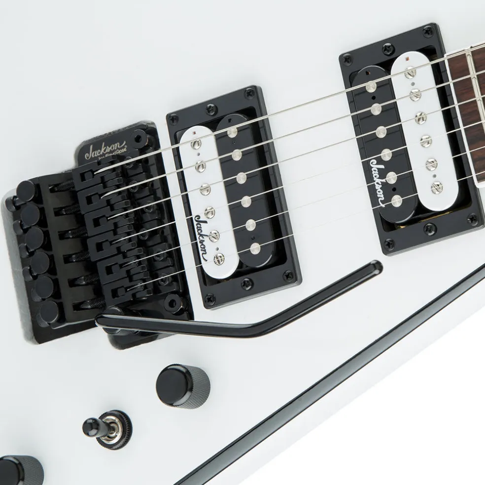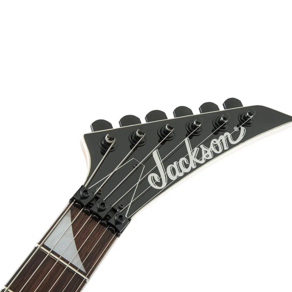 Other features include dual Jackson high-output humbucking pickups with ceramic magnets and three-way toggle switching, Jackson-branded Floyd Rose® double-locking tremolo bridge, standard strap buttons and sealed die-cast tuners.
