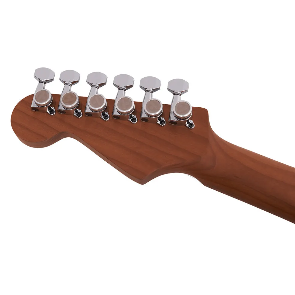 - The lightweight basswood So-Cal body is paired to a bolt-on caramelized maple neck with rock-solid graphite reinforcement to withstand the rigors of the road and an oiled back finish for that smooth playing feel. The speed neck is topped with a 20”-radius caramelized flame maple fingerboard with comfortable rolled edges, 22 jumbo stainless steel frets and white dot inlays outlined in black. Glow-in-the-dark Luminlay® side dots provide exceptional fretboard guidance on the darkest of stages, while a heel-mount truss rod adjustment wheel allows for quick neck tweaks on the go.