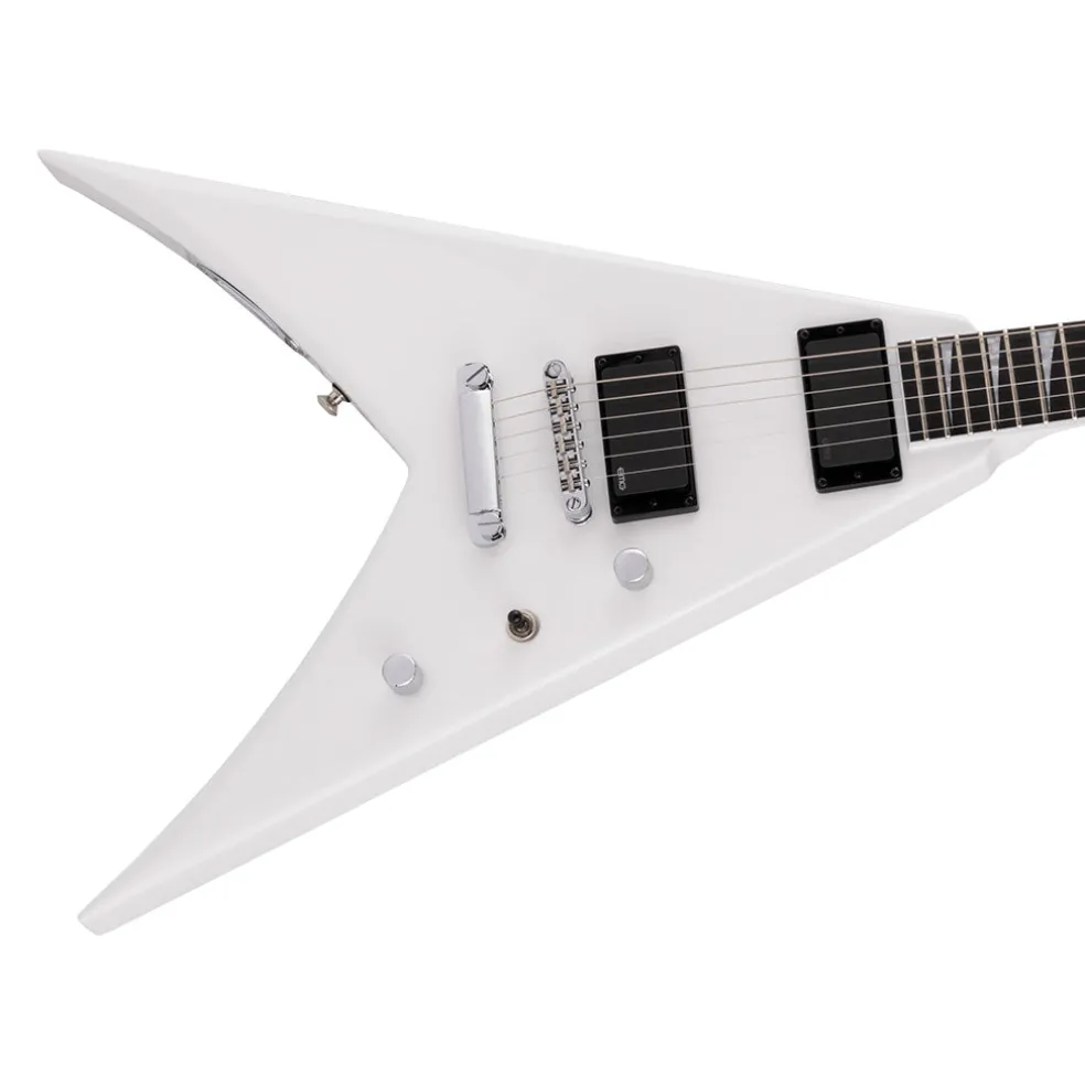 - Command the stage with the innovative and lightning-fast Pro KVTMG, classically wrapped in Snow White with color matched pointy headstock and chrome hardware.