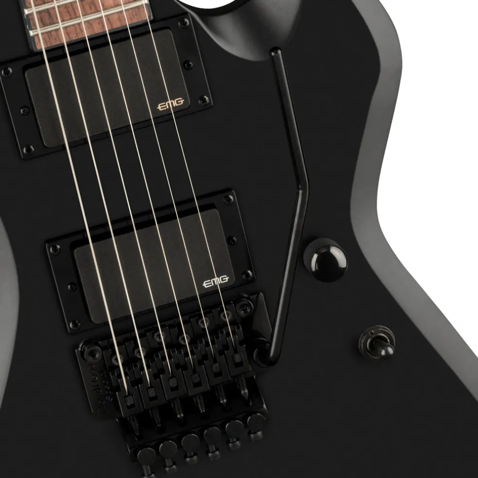 A thunderous EMG® 81 humbucking bridge pickup delivers searing intensity and fluid sustain for lead work that slices through the most dense mixes, while the EMG HA neck pickup provides the widest possible frequency response for clarity, warmth and a rich blend of harmonics — ideal for everything from articulate chording to bright single-coil snap. Other features include a three-way toggle pickup switch, single volume control, Dunlop® dual-locking strap buttons and a dive-bomb-certified Floyd Rose® Special double-locking tremolo bridge.
