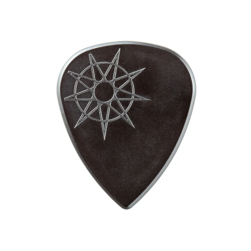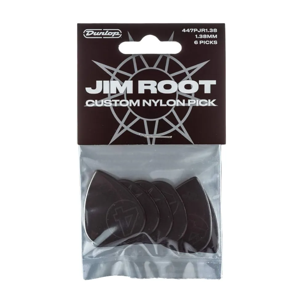 Jim Root’s new pick is made of flexible, warm-sounding nylon and combines the size and shoulder profile of the standard pick shape with the Jazz III-inspired tip for superior speed and precision.