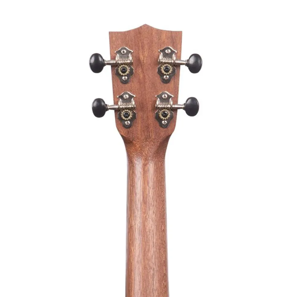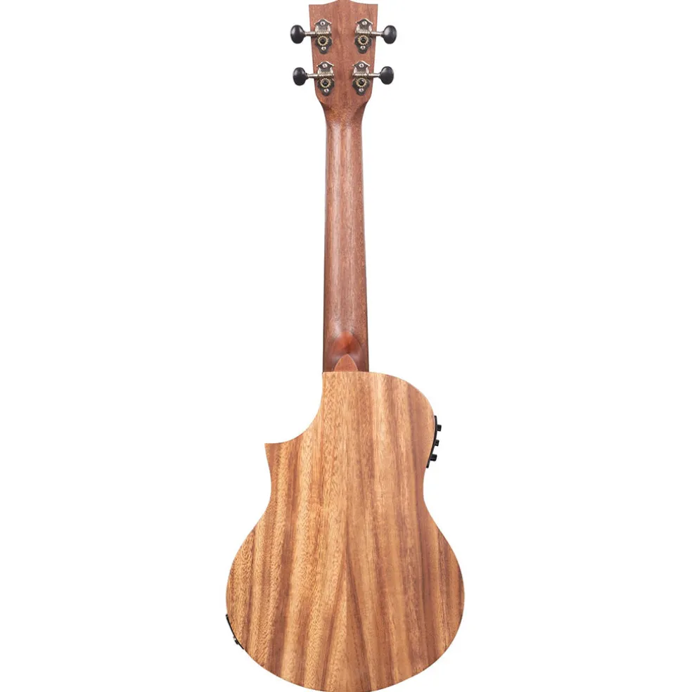 Our Teak Tri-Top Ukulele Series is a striking addition to our line of affordable ukuleles. Made primarily of Teak—a tropical hardwood that has a very soft brown tone with tight, straight grain patterns and striping—the Tri-Top comes together with a triangular strip of mahogany that runs down the center providing a red or orange contrast against the brown. The stain is so natural it looks like the wood is fresh-cut f rom the tree. These ukes also feature a sharp, Florentine Cutaway and an active EQ with built-in tuner. Available in Concert and Tenor models.