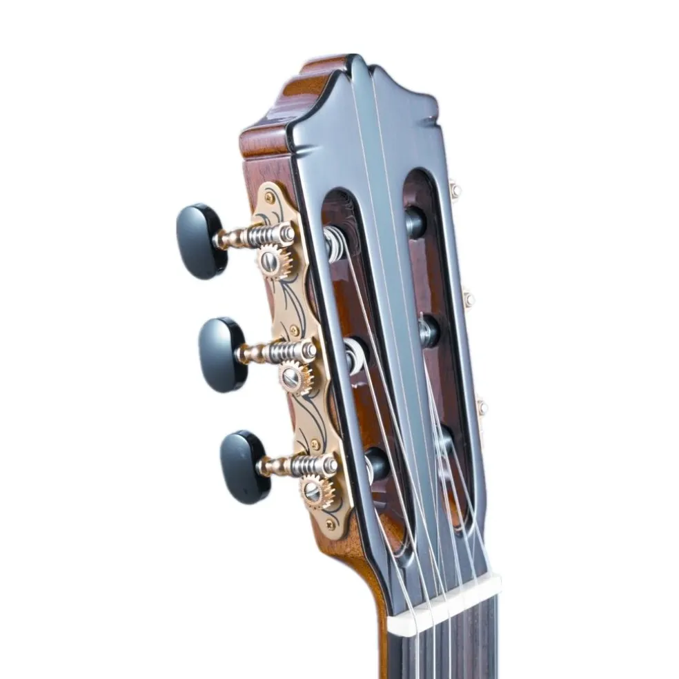 The MCG115S is a fine choice of classical guitar for guitarists seeking a more intimate musical sound. The pairing of a solid spruce top and solid ovangkol back and sides will suit solo recital, small stages and traditional recording situations. A fantastic mid priced classical guitar. Comes complete with hard case.