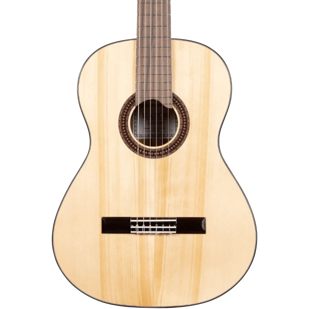 Described as the perfect beginners guitar, the MCG-40’s solid top and layered mahogany back and sides create beautiful tone. The setup is outstanding and playability ideal for anyone the aspiring beginner to advanced student. The spruce soundboard will reward players as it opens up with and regular play.
