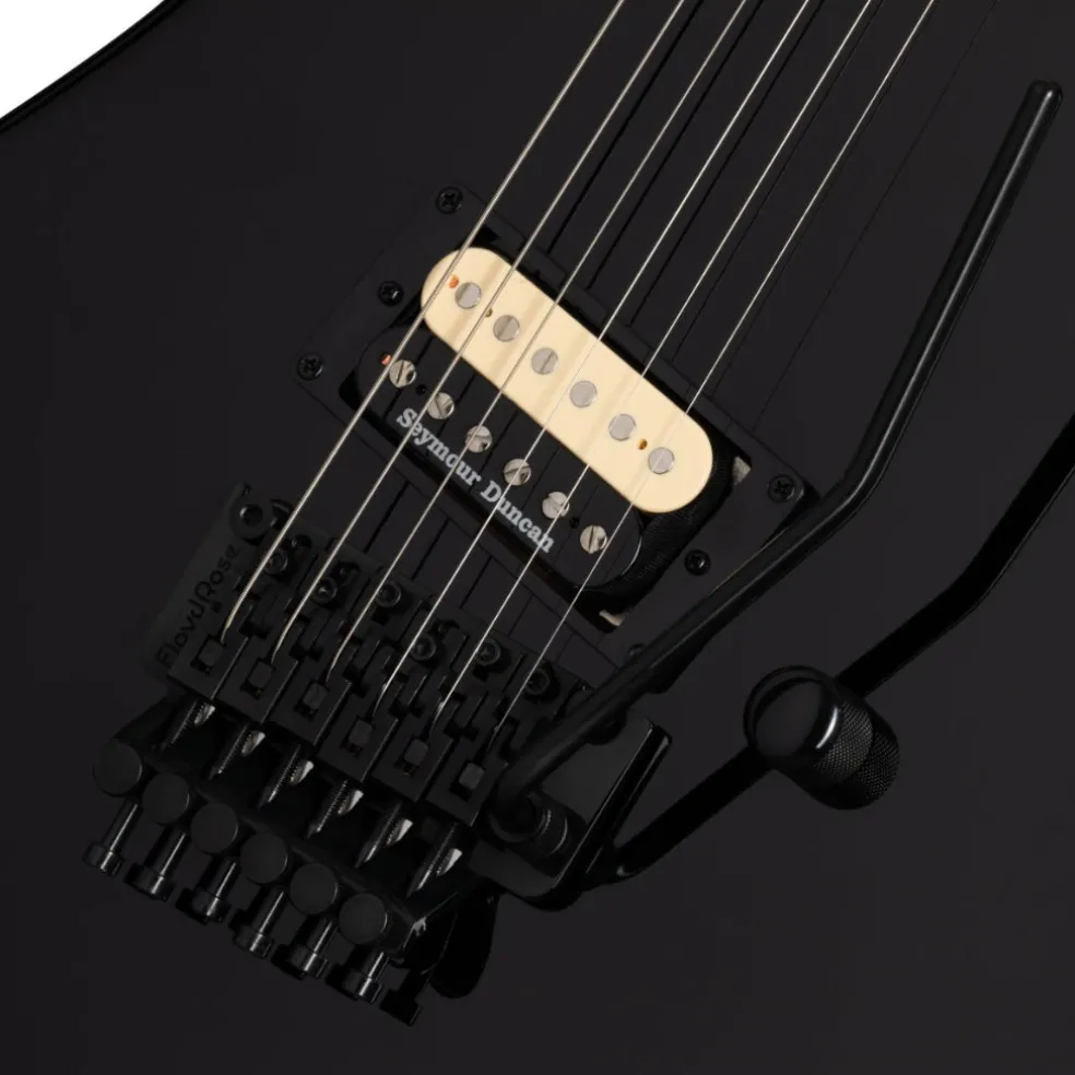 The Baretta is part of the Kramer Original Collection and is a tribute to one of the most iconic and original guitar designs in rock. Featuring a maple body, hard maple neck with a fast-playing satin finish, a single Seymour Duncan® JB™ zebra-coil humbucker, and a Floyd Rose® 1000 series tremolo with an R2 1000 series locking nut. Available in Ebony, Jumper Red, and Bumblebee Yellow.