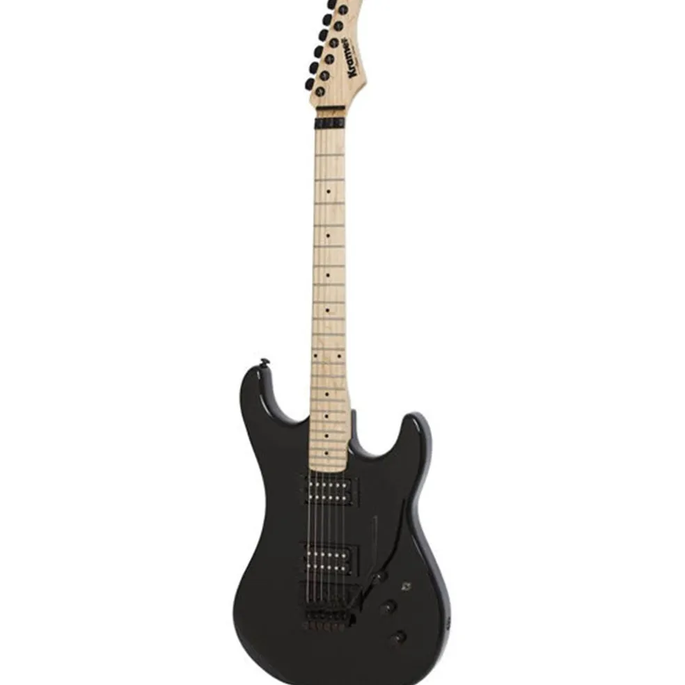 The Pacer Classic is a superb tribute to the original 1982 Kramer that knocked the guitar world for a loop. The Pacer Classic is built for the hardest rocking, fastest riffing players out there, with a 25.5 scale maple neck with a SlimTaper™ C-shaped profile and 22 medium jumbo frets. The Pacer Classic has black hardware, a mahogany double-cutaway body, a pair of open-coil Alnico Classic 5 humbuckers™, a “treble-bleed” mod to retain shimming highs at lower volume settings, and a Floyd Rose® Licensed Tremolo bridge and R2 Locking Nut.