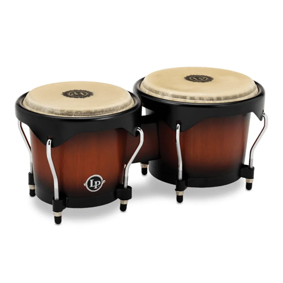 Satin finish wood bongos with 6” and 7” rawhide heads